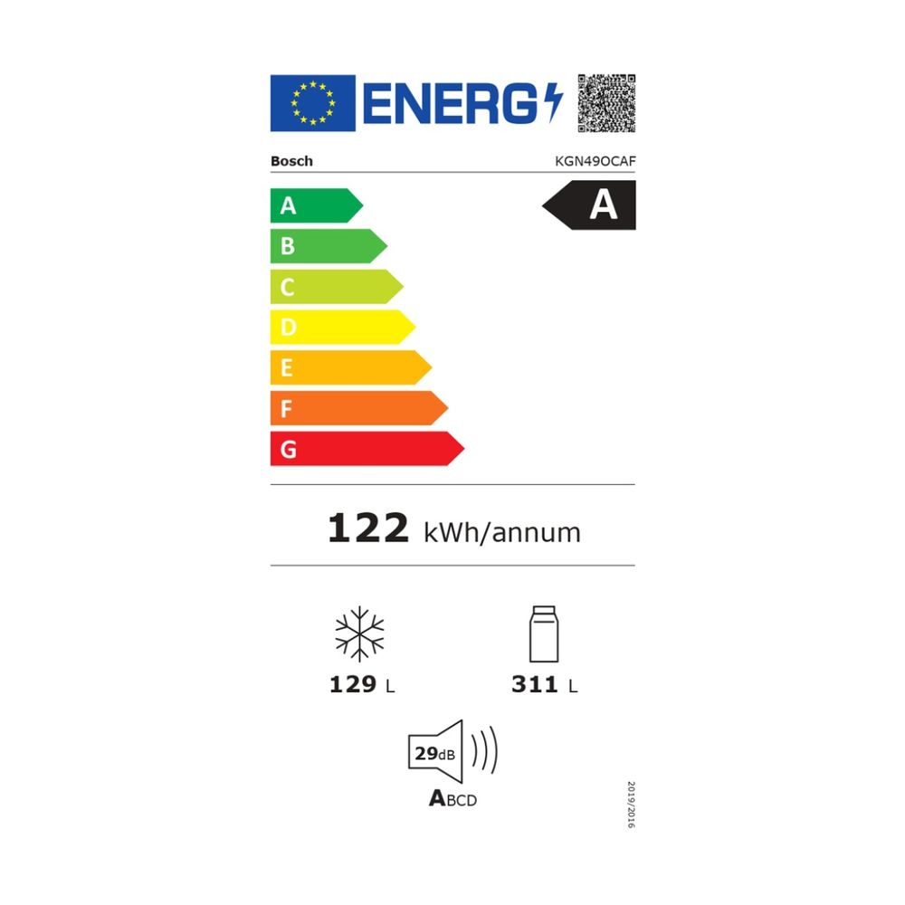 Ψυγειοκαταψύκτης Bosch KGN49OCAF με χωρητικότητα 440lt, total No Frost, τεχνολογία Multi Airflow, χαμηλό επίπεδο θορύβου και ηχητική ειδοποίηση σε περίπτωση ανοιχτής πόρτας.
