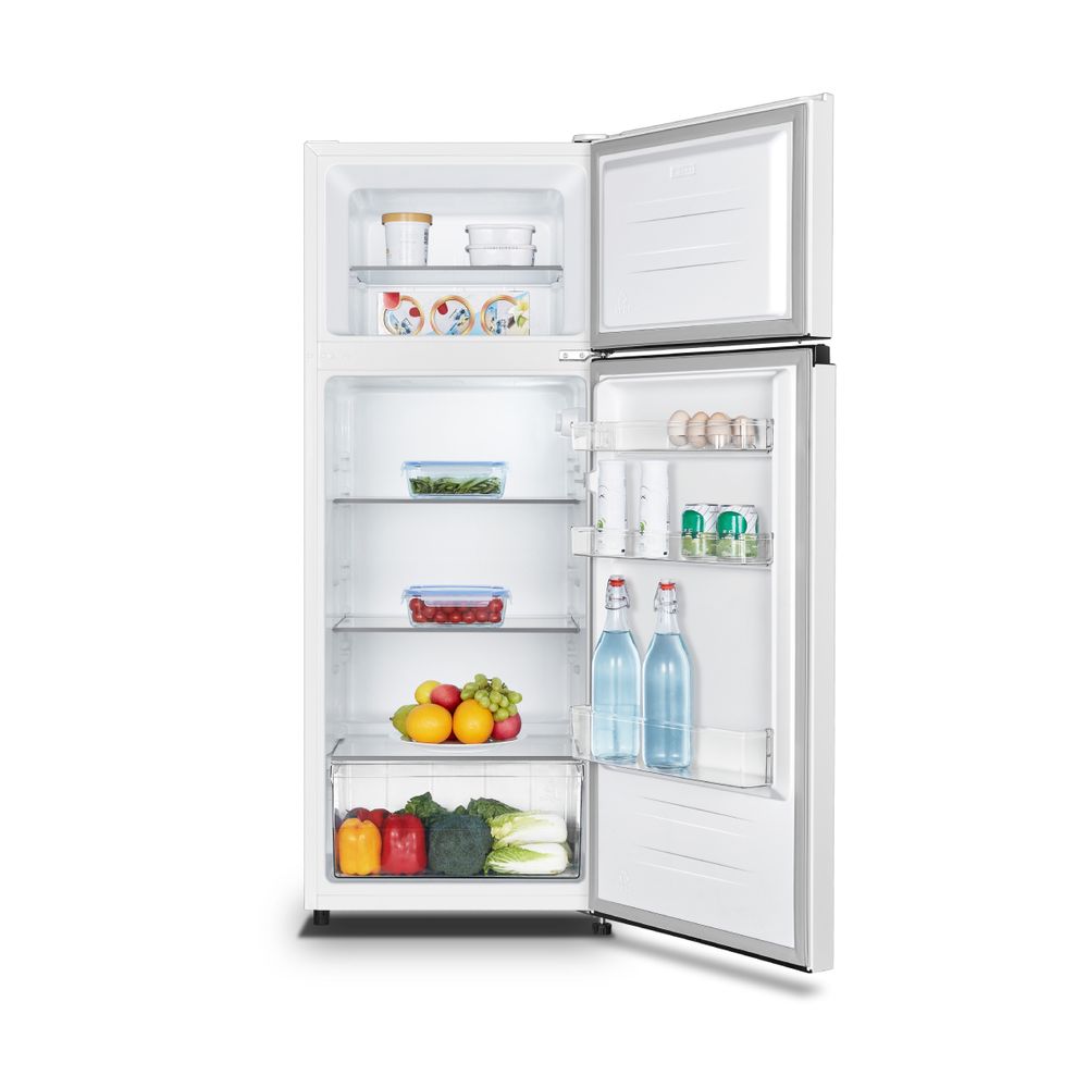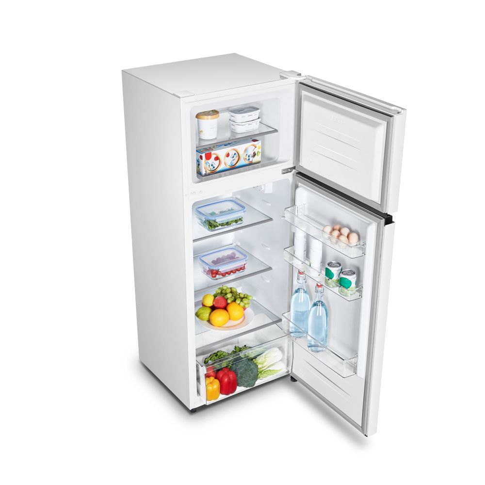 Ψυγείο Delonghi D55TW20G λευκού χρώματος, μικτής χωρητικότητας 207lt, πλάτους 55cm, με κατάψυξη 4 αστέρων, φωτισμό LED και ρυθμιζόμενα ράφια από γυαλί ασφαλείας για εύκολο καθαρισμό.