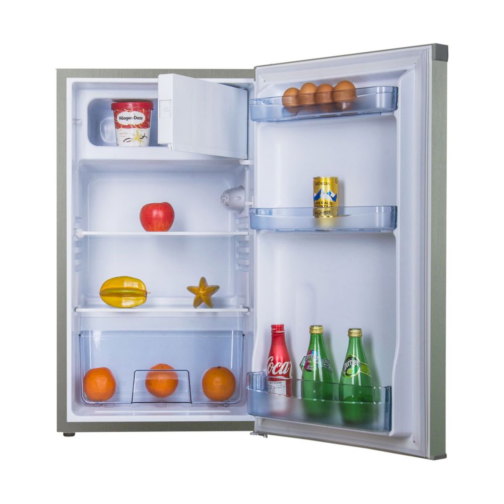 Ψυγείο μονόπορτο T71083ESD Inox Look χωρητικότητας 83 lt, κατάψυξη 3 αστέρων, εσωτερικό φωτισμό, συρτάρι φρούτων και λαχανικών με γυάλινο καπάκι.