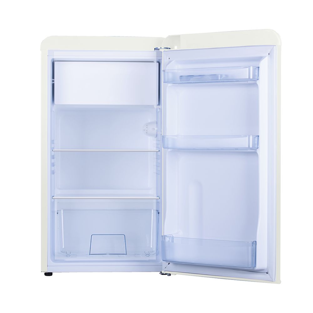 Μονόπορτο ψυγείο Morris με Retro σχεδιασμό και χωρητικότητα 75lt ψύξης, 8lt κατάψυξης. Διαθέτει χώρο αποθήκευσης μεγάλων μπουκαλιών στην πόρτα και συρτάρι φρούτων και λαχανικών με γυάλινο καπάκι.