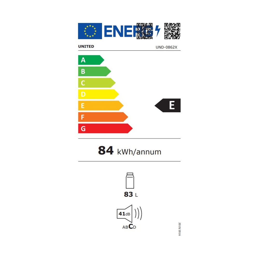 Ψυγείο UND-0862X Inox από την United, με 2 ράφια από γυαλί ασφαλείας, 3 ράφια πόρτας και συρτάρι φρούτων και λαχανικών με γυάλινο καπάκι. Διαθέτει εσωτερικό φωτισμό μέσω λάμπας τύπου LED για χαμηλή κατανάλωση, μηχανικά ρυθμιζόμενο έλεγχο θερμοκρασίας και πόρτα με δυνατότητα αλλαγής φοράς ανοίγματος.