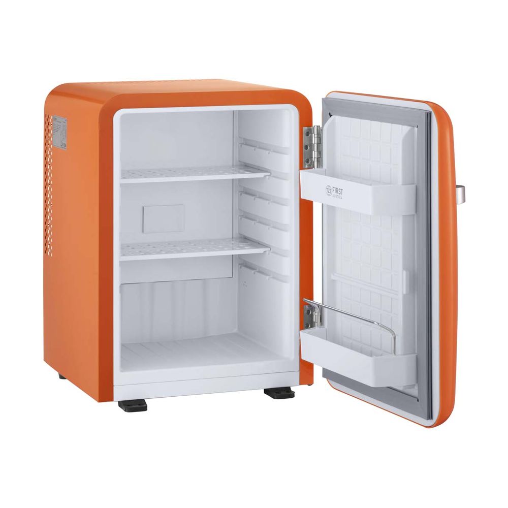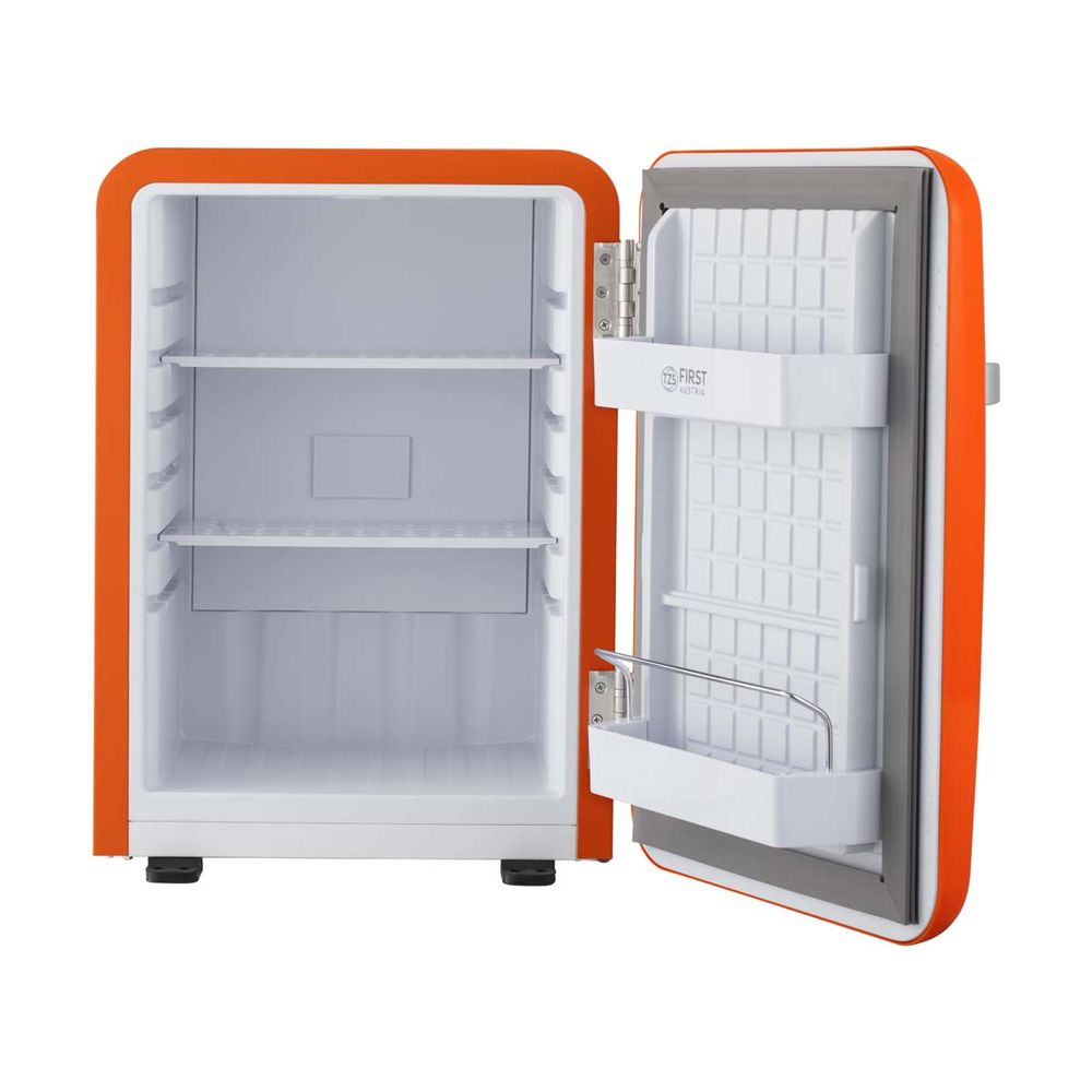 Μίνι ψυγείο σε vintage σχέδιο, από την First Austria. Διαθέτει χωρητικότητα 40 λίτρα μεικτά/34 λίτρων καθαρά και εκπέμπει χαμηλό θόρυβο 22Db. Η θερμοκρασία είναι ρυθμιζόμενη, ενώ διαθέτει Φωτισμό LED στο εσωτερικό, για να βλέπεις τα περιεχόμενα με ευκολία, και τέσσερα πλαστικά ράφια.