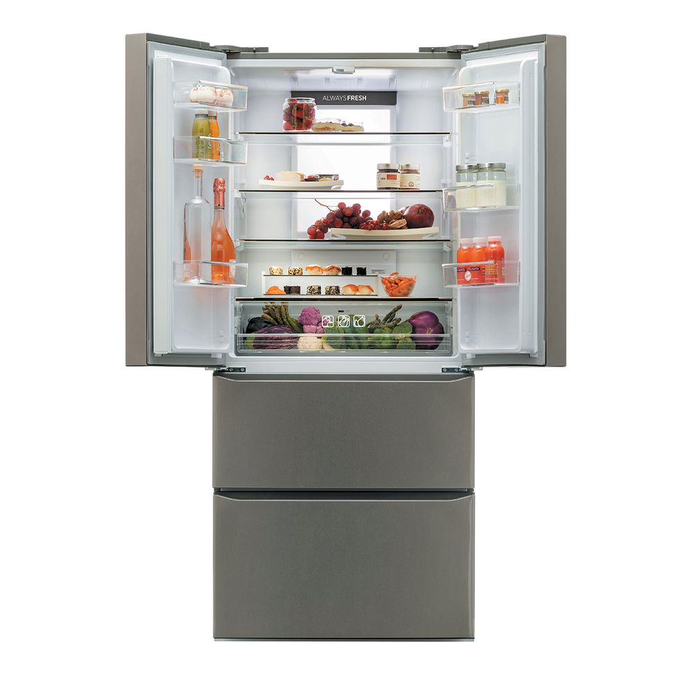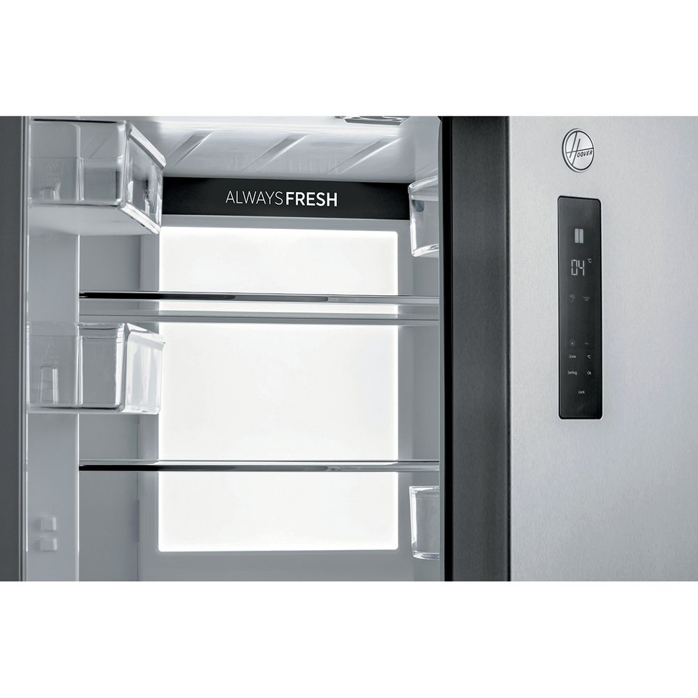 Ψυγείο ντουλάπα Hoover HMDN184 με χωρητικότητα 409 lt, τεχνολογία Total No Frost Always Fresh και εξωτερική ψηφιακή οθόνη αφής.