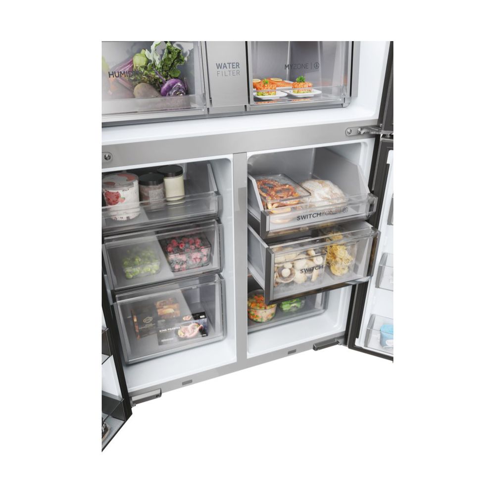 Ψυγείο Ντουλάπα Haier HCR7918EIMP, συνολικής καθαρής χωρητικότητας 601 lt, με ψύξη Air Surround, συρτάρι με ρυθμιζόμενη θερμοκρασία MyZone, dispenser νερού και πάγου, και εξωτερική οθόνη ελέγχου.