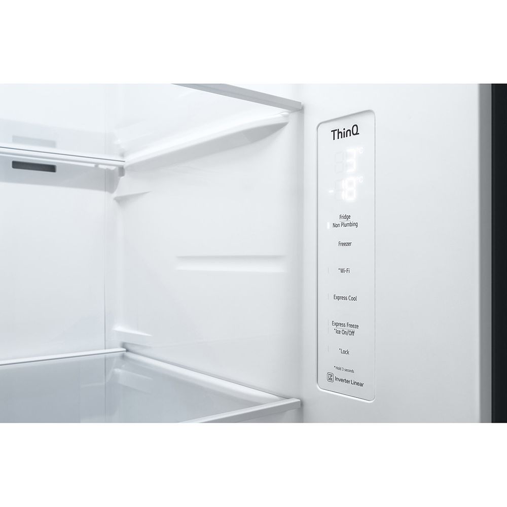 Ψυγείο ντουλάπα LG GSLV71MCTD με τύπο ψύξης Full No Frost, συνολική χωρητικότητα 635 lt, χρώμα matte black και δυνατότητα WiFi σύνδεσης.