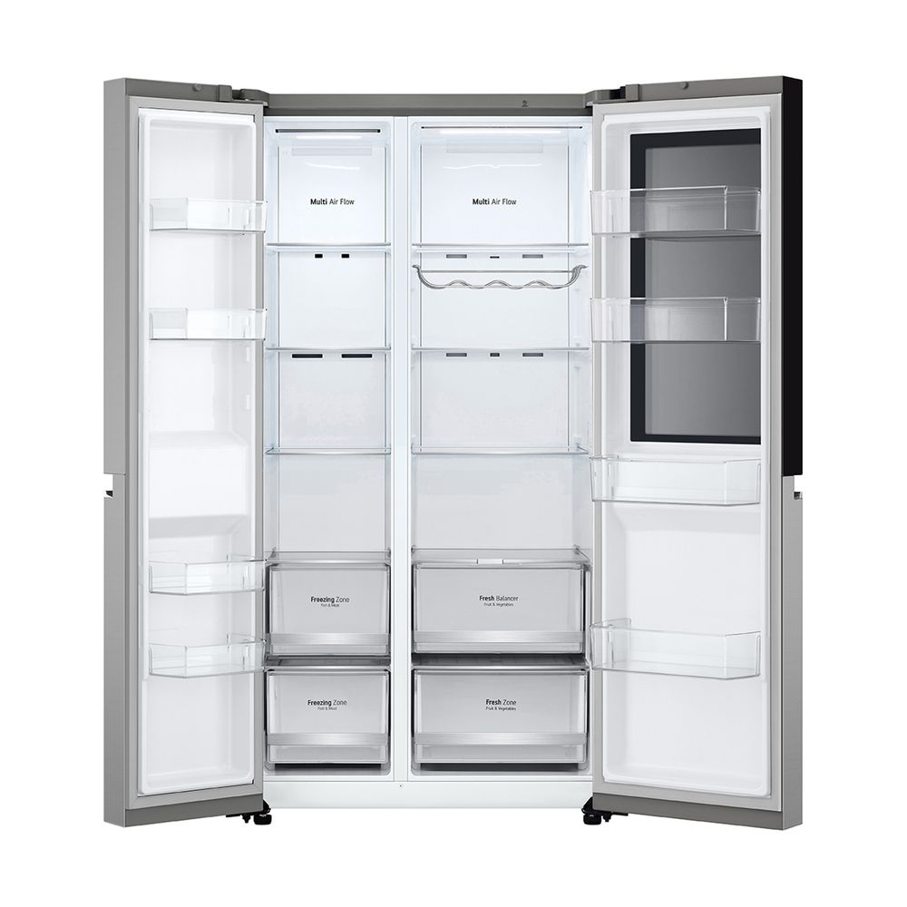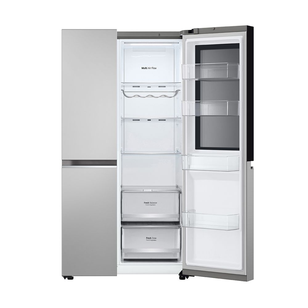 Ψυγείο ντουλάπα LG GSVV80PYLL με χωρητικότητα 655 lt και InstaView που σου επιτρέπει να βλέπεις μέσα στους χώρους άμεσης πρόσβασης χωρίς να ανοίγεις την πόρτα, μειώνοντας την απώλεια ψυχρού αέρα ώστε να διατηρούνται τα τρόφιμα φρέσκα για περισσότερο καιρό.