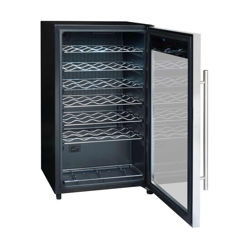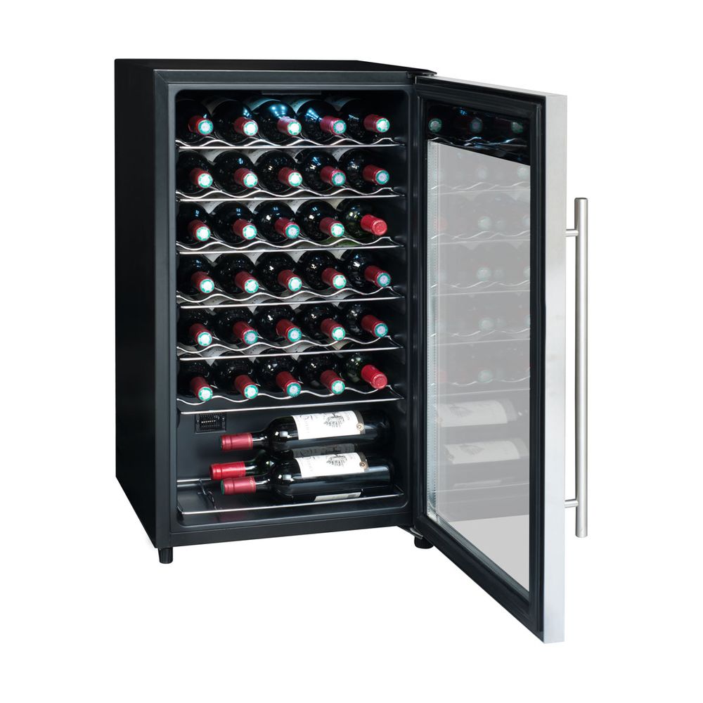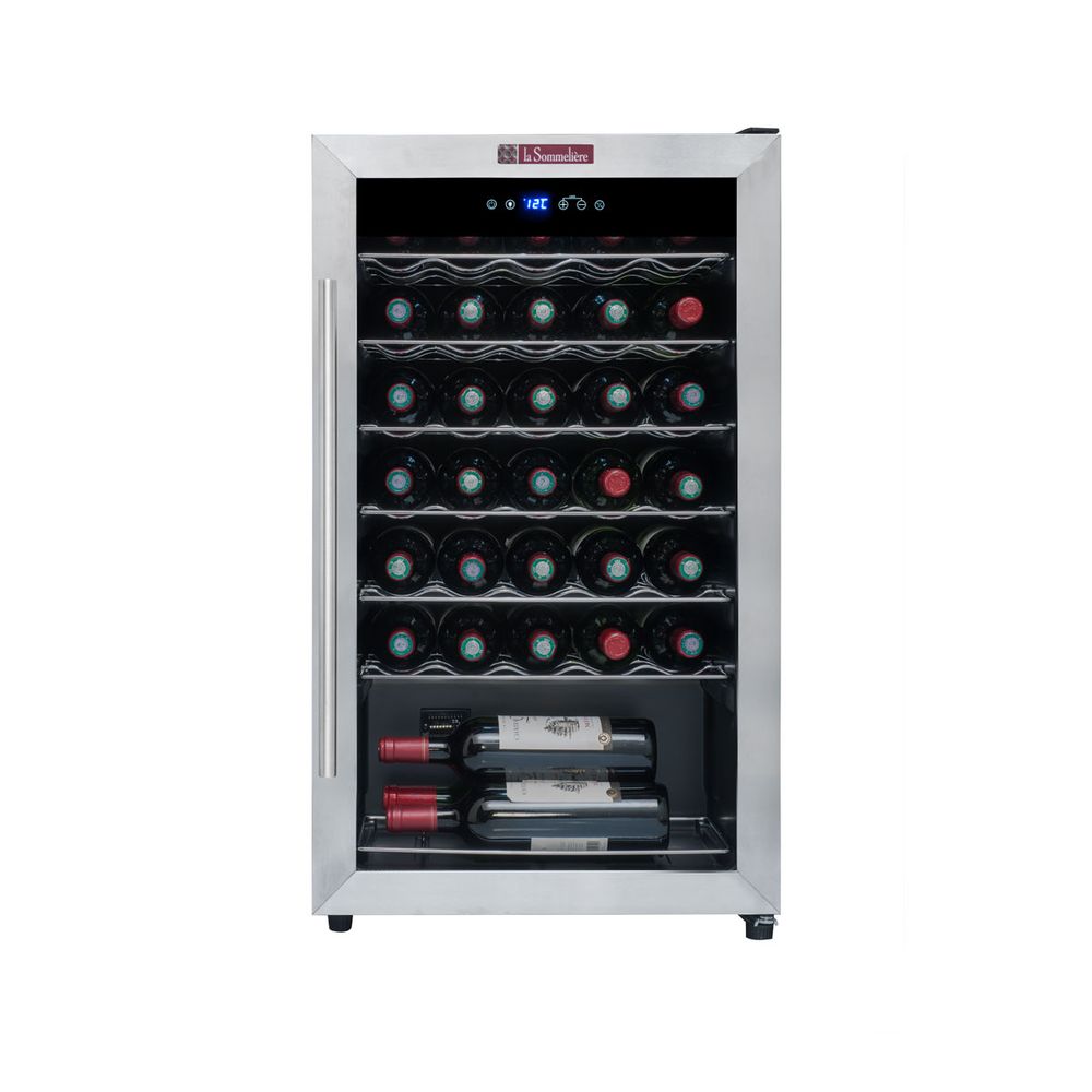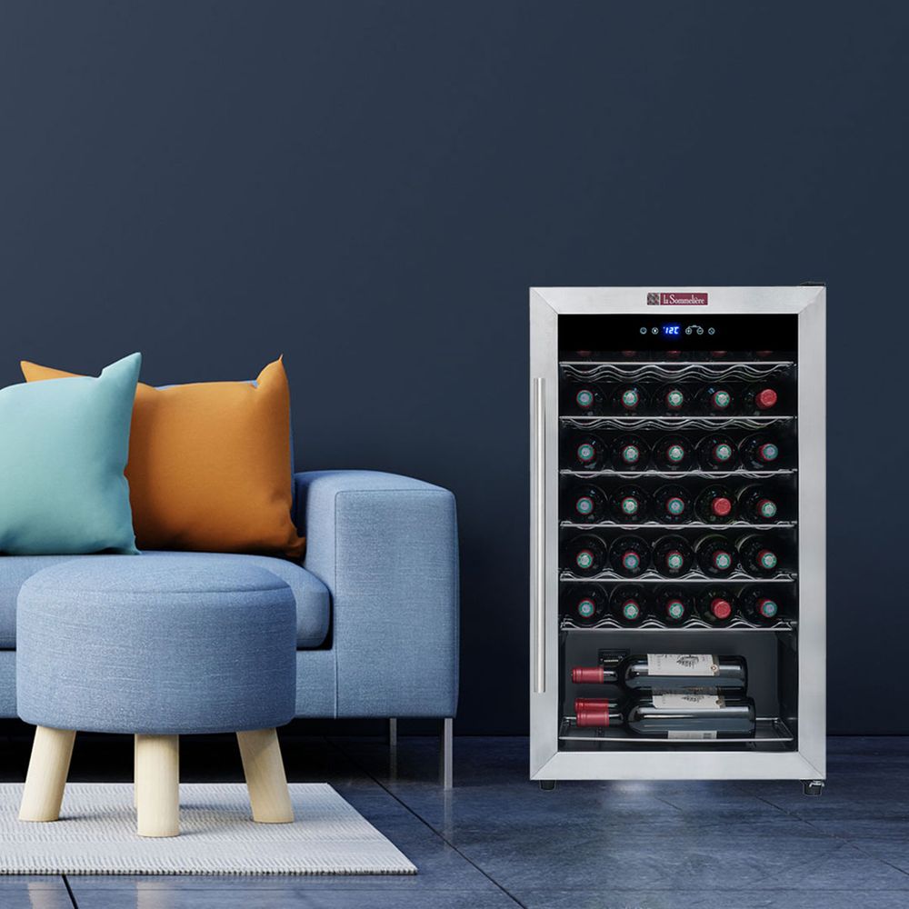Κάβα κρασιού LS34A για να φέρεις έως και 34 μπουκάλια κρασιού στην ιδανική θερμοκρασία σερβιρίσματος. Σε αυτό το κελάρι μονής ζώνης, μπορείς να ρυθμίσεις τη θερμοκρασία χωρίς καν να ανοίξεις την πόρτα χρησιμοποιώντας τα κουμπιά αφής. Το κομψό κελάρι παρέχεται με 6 συρμάτινα ράφια και 1 μισό ράφι.