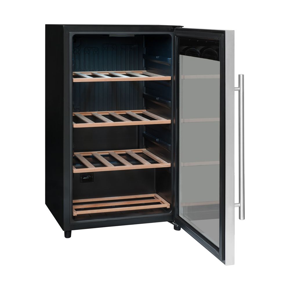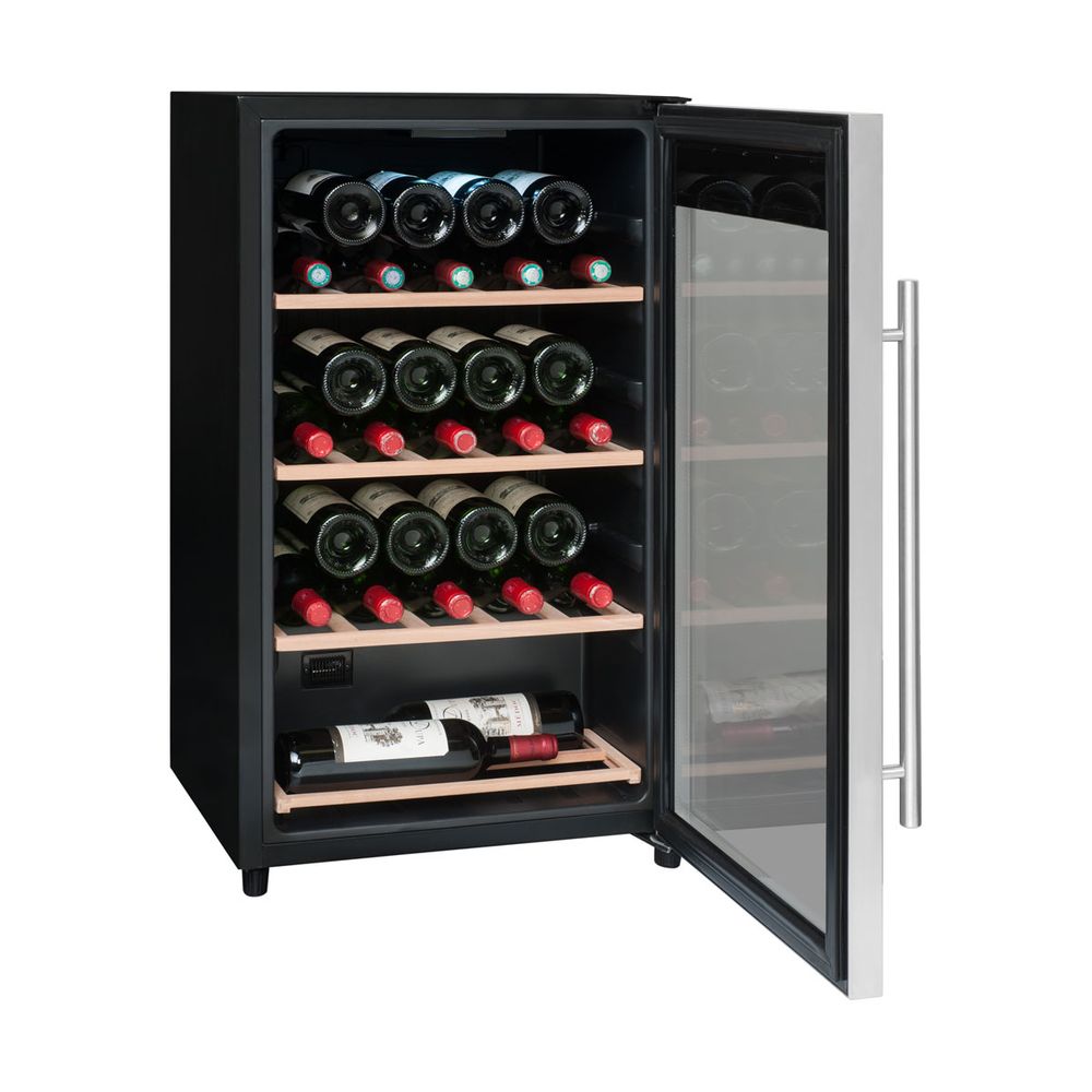 Κάβα κρασιού LS36A για να φέρεις έως και 36 μπουκάλια κρασιού στην ιδανική θερμοκρασία σερβιρίσματος. Σε αυτό το κελάρι μονής ζώνης, μπορείς να ρυθμίσεις τη θερμοκρασία χωρίς καν να ανοίξεις την πόρτα χρησιμοποιώντας τα κουμπιά αφής.