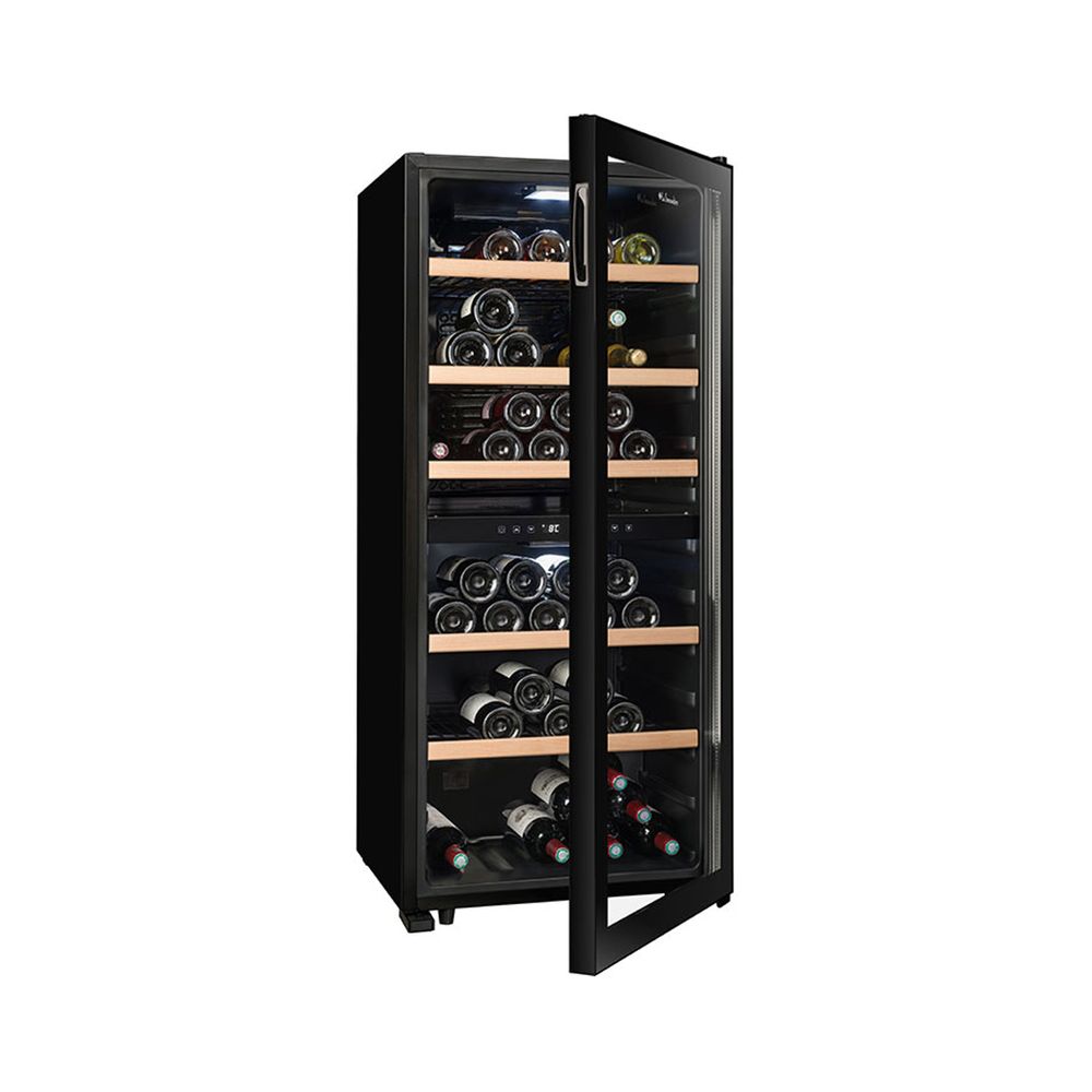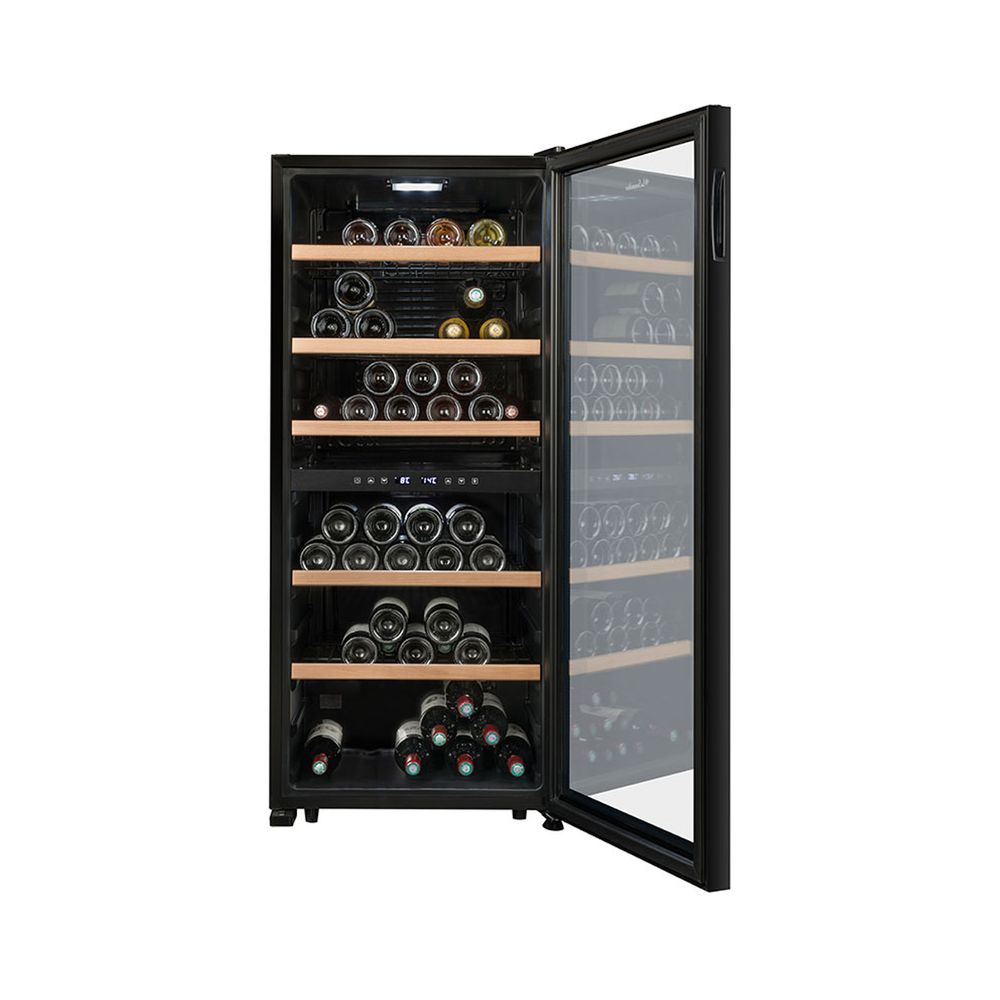 Απόλαυσε το αγαπημένο σου κρασί στη σωστή θερμοκρασία και διατήρησέ το στο wine cooler χωρητικότητας 102 φιαλών, με πέντε ράφια, φωτισμό LED, 2 ζώνες ψύξης και αναστρέψιμη πόρτα για να το τοποθετήσεις όπου σε βολεύει.
