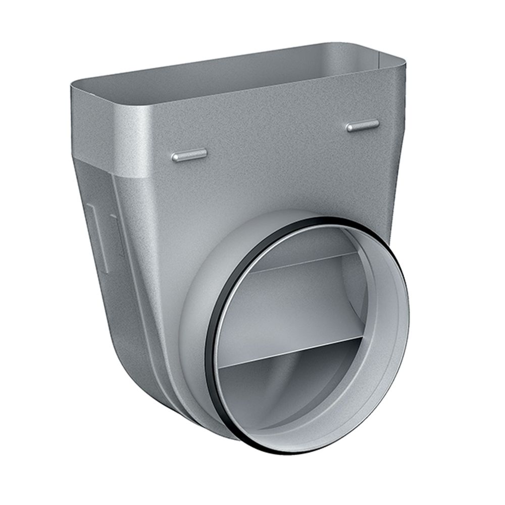 Κατάλληλο για τον Downdraft απορροφητήρα DDW88MM66. Προσαρμογέας, ⌀ 150 mm, 90 °, Συνδετικό σωληνώσεων από πλακέ σε στρογγυλό. Αλουμίνιο.