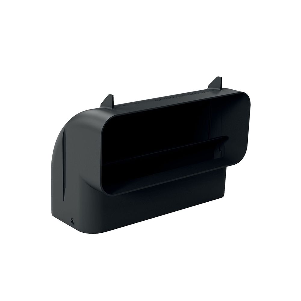 Επίπεδη γωνία σύνδεσης 90°, για σύστημα εξαγωγής ή ανακύκλωσης αέρα με σωληνώσεις, σε μαύρο χρώμα.