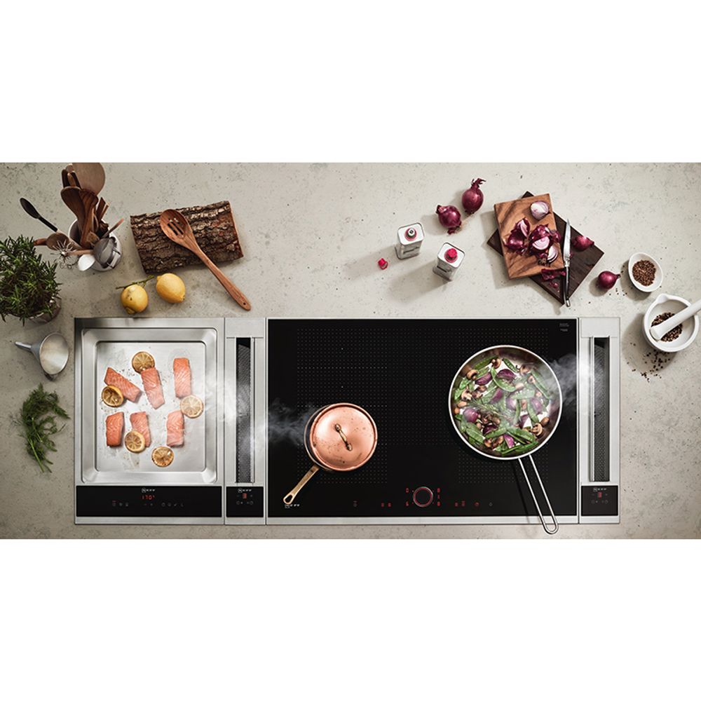 Ο απορροφητήρας πάγκου Neff I91VT44N0 μέγιστης απορροφητικότητας 600 m3/h, δίπλα στις εστίες προσφέρει μεγαλύτερη ευελιξία και μια ελεθερία κινήσεων μαγειρεύοντας, χάρη στην εγκατάσταση για εξοικονόμηση χώρου στον πάγκο.