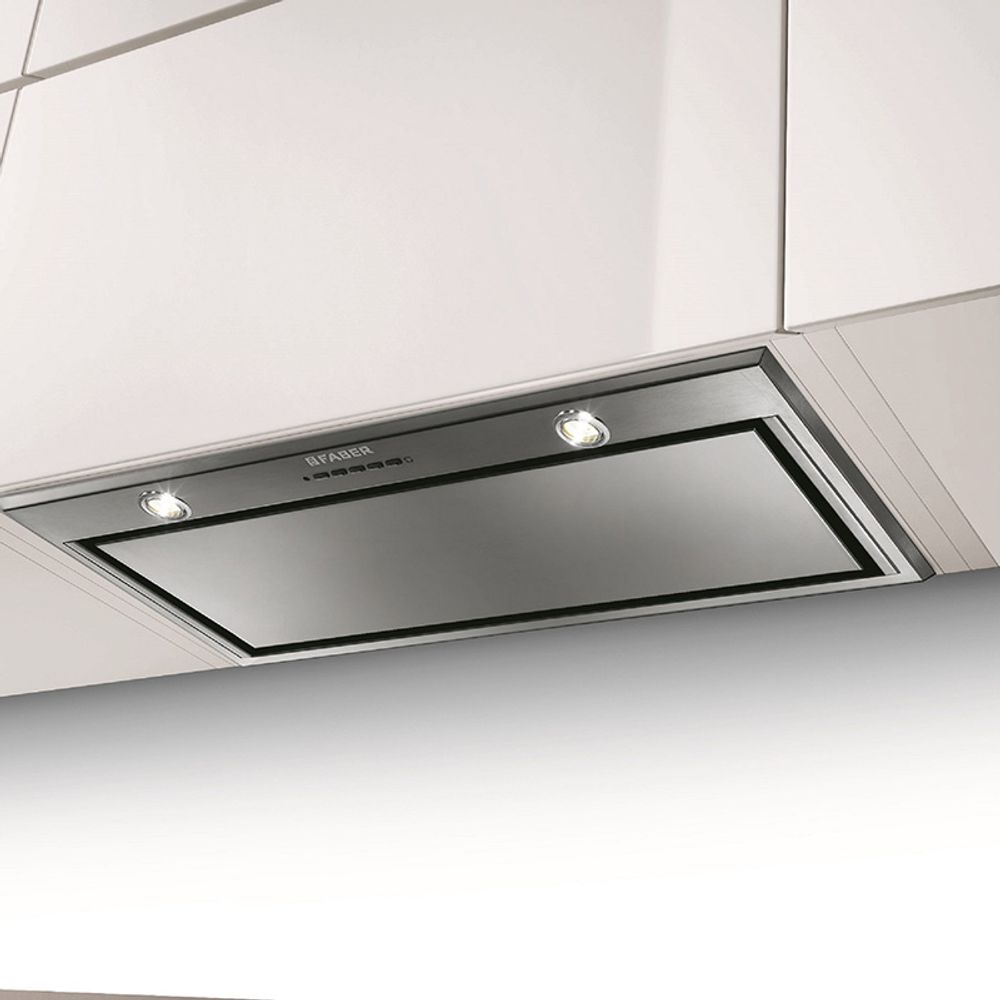 Απορροφητήρας τζάκι Faber Collection INCA LUX 2.0EG8XA70 με εξαιρετικά υψηλή απορροφητική ισχύ 710 m3/h, εξοπλισμένος με περιμετρική εξαγωγή και μοναδικό design.