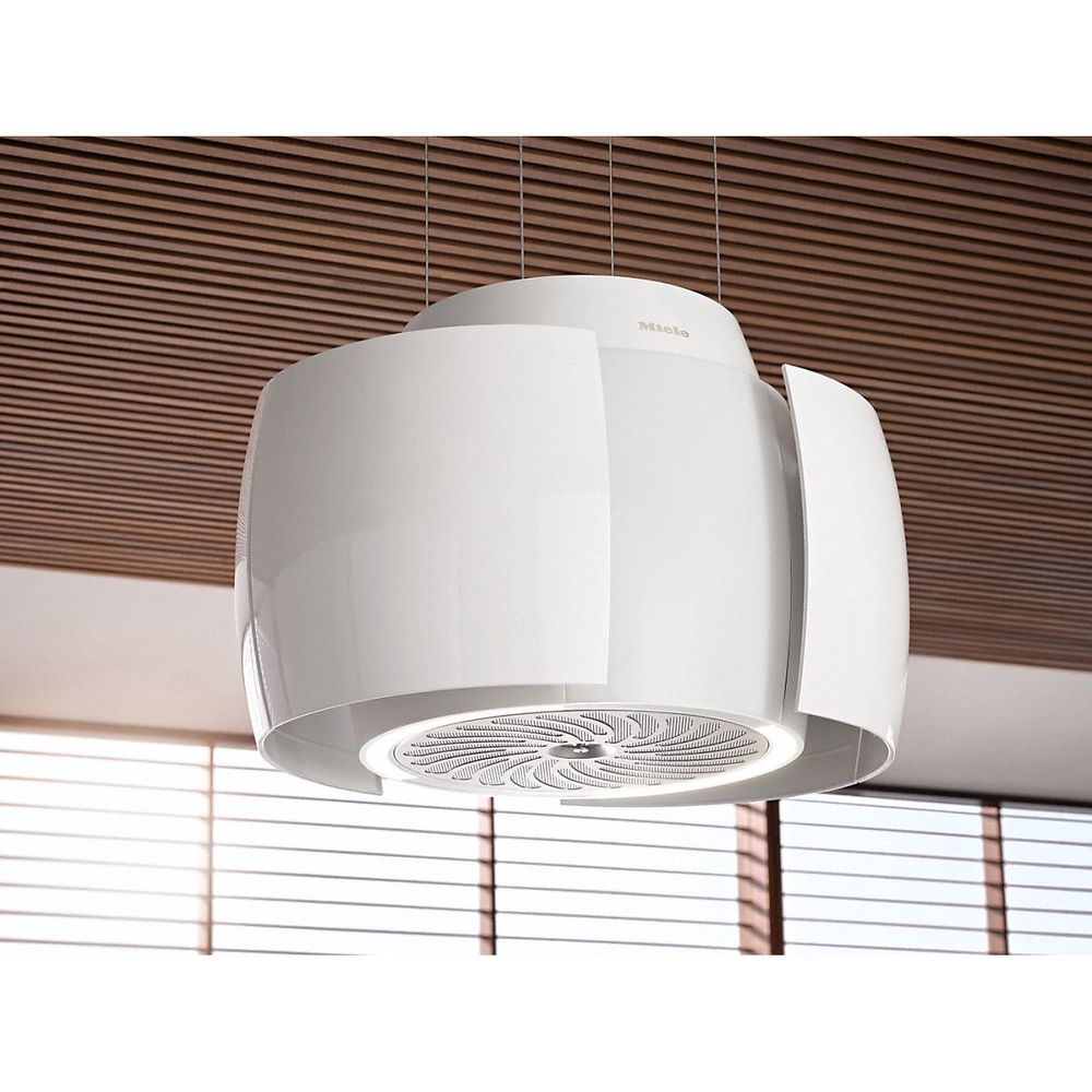 Απορροφητήρας οροφής Miele DA 7378 D Aura 4.0 Ambientμε κομψό σχεδιασμό όπως το σχήμα μιας λάμπας οροφής με μηχανικά πτερύγια, εξατομικευμένο φωτισμό χρώματος, μοναδική λειτουργία αφαίρεσης υγρασίας και αποκλειστική λειτουργία αρωματισμού. Διαθέτει λειτουργία έξυπνου ελέγχου μέσω Con@ctivity 3.0 και της εφαρμογής Miele@mobile.