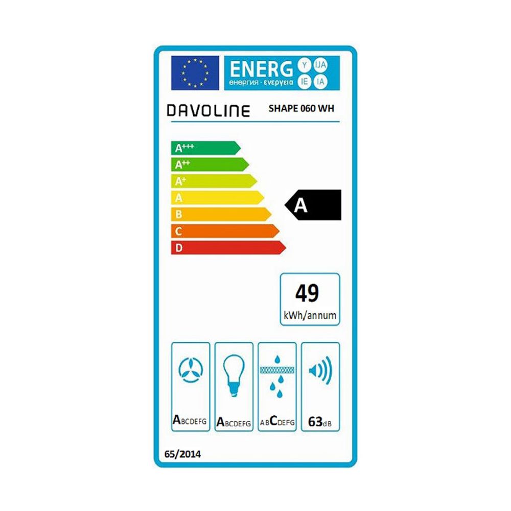 Απορροφητήρας καμινάδα Davoline Shape με απορροφητικότητα 648 m3/h, ετήσια ενεργειακή κατανάλωση 48.6 kwh και διακόπτες αφής.