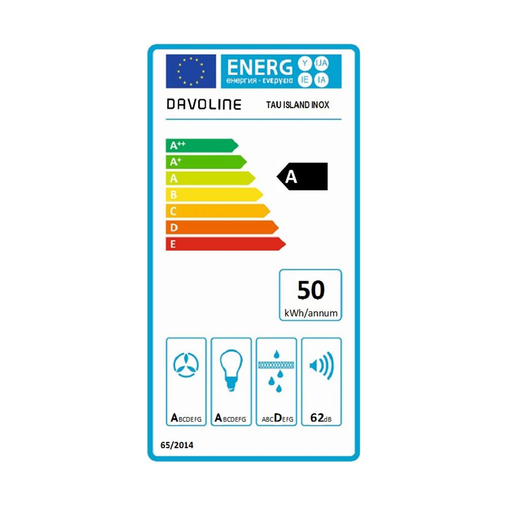 Απορροφητήρας νησίδας Davoline Tau Island με απορροφητικότητα 765 m3/h, ετήσια ενεργειακή κατανάλωση 48.5 kwh και με φωτισμό 2×3 W Led.