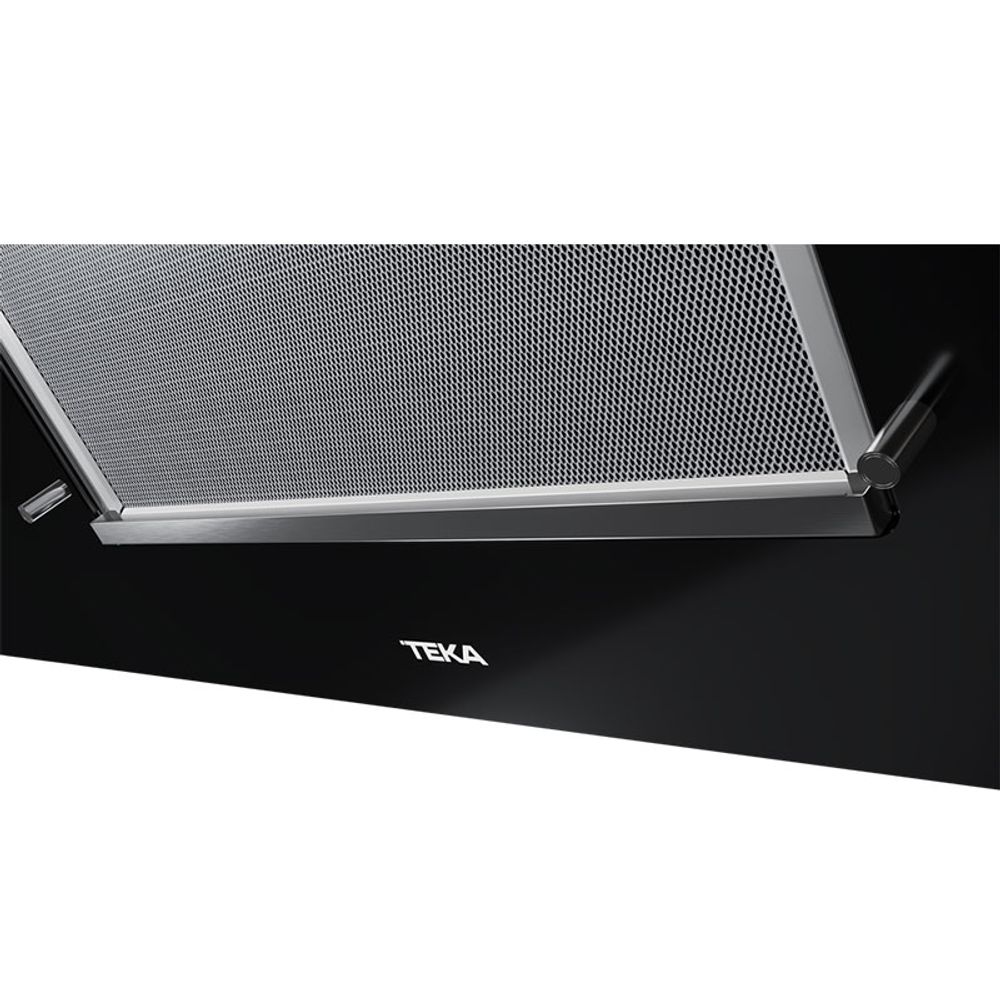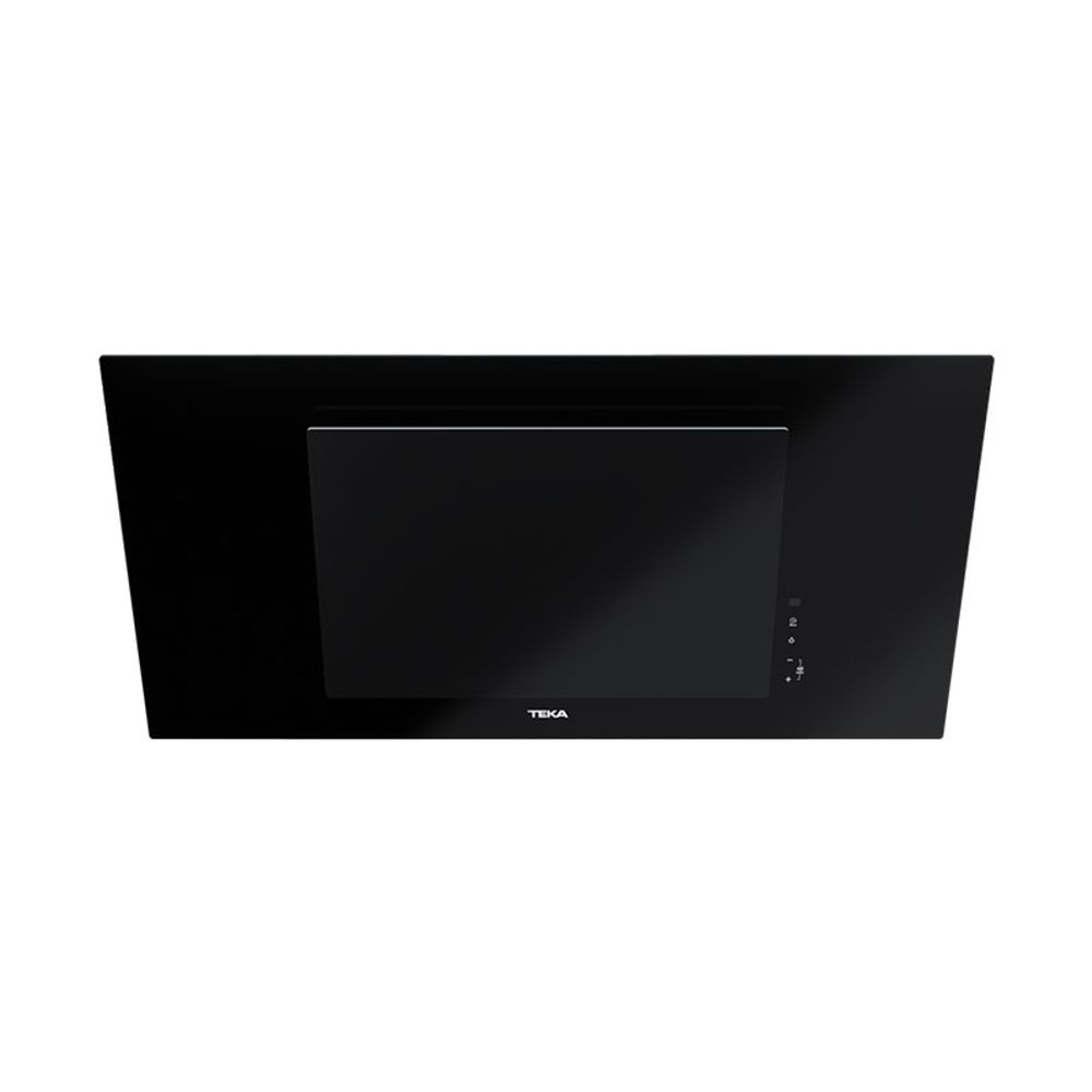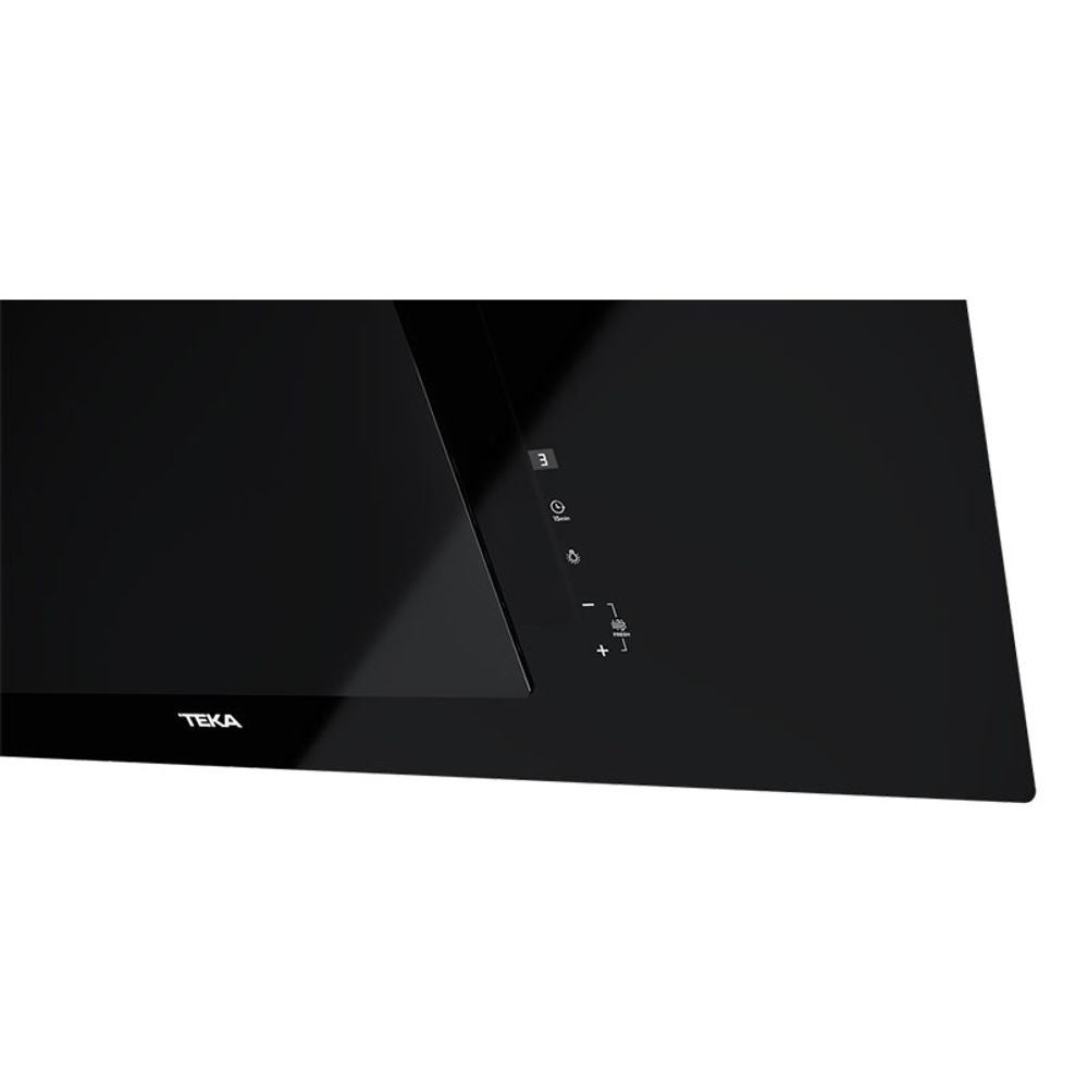 Καμινάδα τοίχου DLV 98660 της Teka με επικλινής επιφάνεια & λειτουργία FreshAir στα 90cm με μοτέρ EcoPower, χειριστήριο με αισθητήρες αφής, λειτουργία FreshAir με ταχύτητες: 3 + 1 εντατική, φωτισμό LED και ένδειξη κορεσμού φίλτρων.
