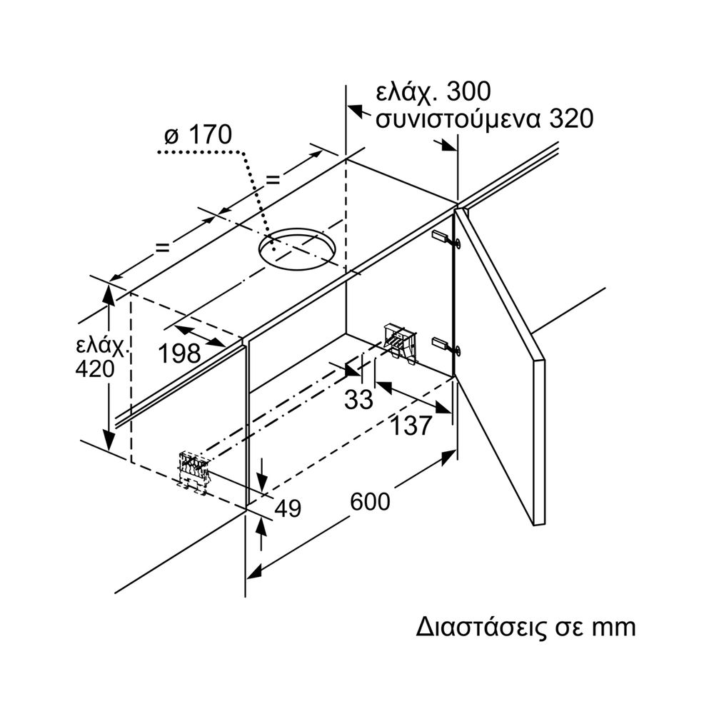 Χειρισμός με πλήκτα low-lift, Επίπεδα θορύβου min/max 41/53 dB, Διακριτικός φωτισμός με 2 λάμπες αλογόνου των 25W