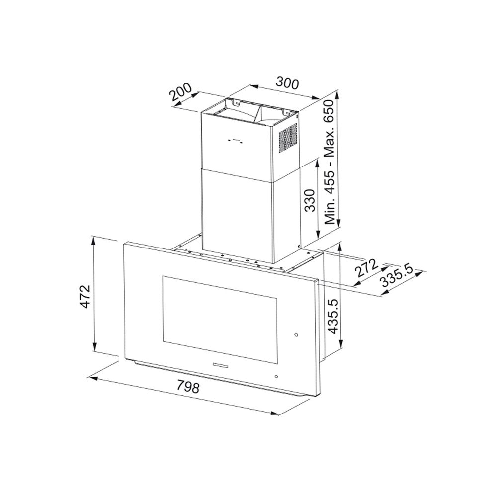 Επιτοίχιος απορροφητήρας καμινάδα AQ Sense FKAS A80 από την Franke, πλάτους 80 cm, με οθόνη αφής 21.5'' και ηλεκτρονικό χειρισμό με touch control, αισθητήρα ποιότητας αέρα και χειρισμο μέσω εφαρμογής.