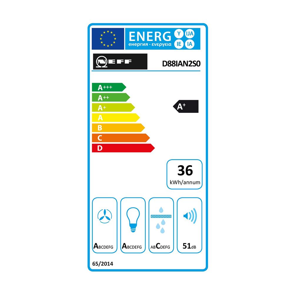 Απορροφητήρας Καμινάδα D88IAN2S0 της εταιρείας Neff εξοπλισμένος με Smart Hood Automatic, όπου ο απορροφητήρας σου είναι συμβατός με την εστία και προσαρμόζεται αυτόματα στις ρυθμίσεις της κατά το μαγείρεμα, touch control, κινητήρα Efficient Drive καθώς και ρυθμιζόμενο λευκό φωτισμό.