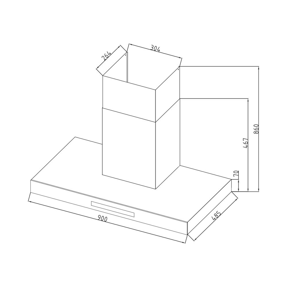 Απορροφητήρας καμινάδα επαγγελματικού τύπου 90 εκατοστών με μεταλλικά φίλτρα και φωτισμό LED. Διαθέτει πλήκτρα αφής για μοντέρνο στυλ και εύκολο χειρισμό.