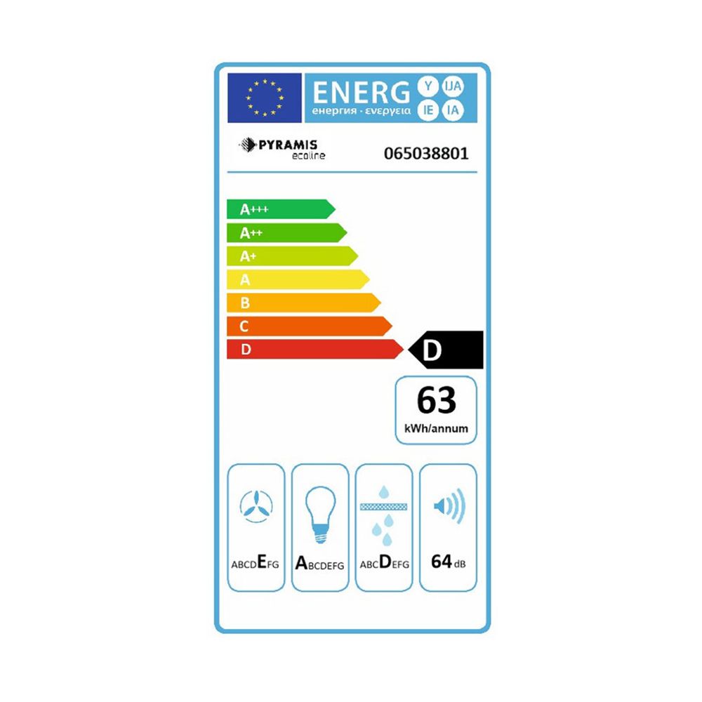 Απορροφητήρας Essential της εταιρείας Pyramis με μέγιστη απορροφητικότητα 300m³/h, πατητούς διακόπτες που εξασφαλίζουν εύκολη χρήση και άριστο αισθητικό αποτέλεσμα. γυάλινη πρόσοψη, μεταλλικά φίλτρα που προστατεύουν το εσωτερικό μέρος του απορροφητήρα, εμποδίζοντας το απορροφημένο λίπος να βλάψει τα ηλεκτρικά τμήματά του.