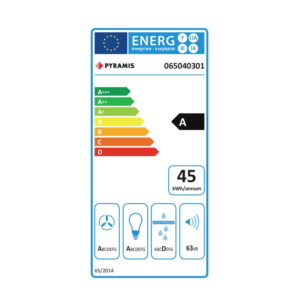 Απορροφητήρας καμινάδα της Pyramis με μέγιστη απορροφητική ισχύς 679m³/h , μεταλλικά φίλτρα, πλήκτρα αφής και χαμηλό θόρυβο.