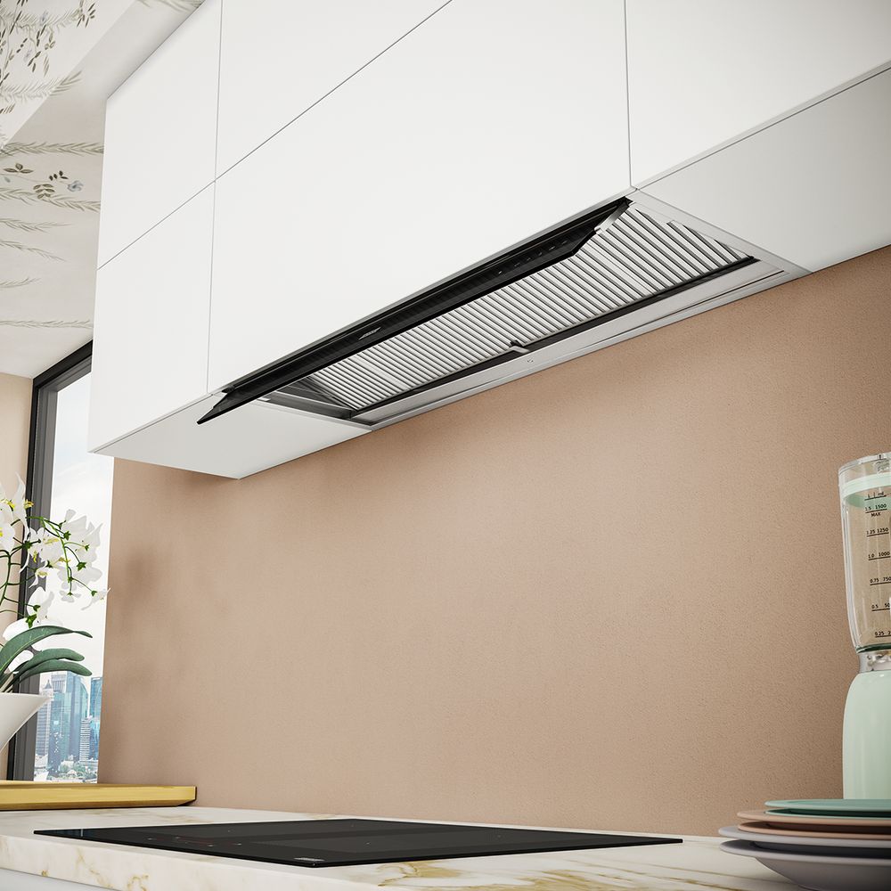 Εντοιχιζόμενος απορροφητήρας Maris Drip-Free 90 K-LINK, 90cm, με ηλεκτρονικό χειρισμό, inox/μαύρο κρύσταλλο, ο οποίος συνδέεται με εστία.