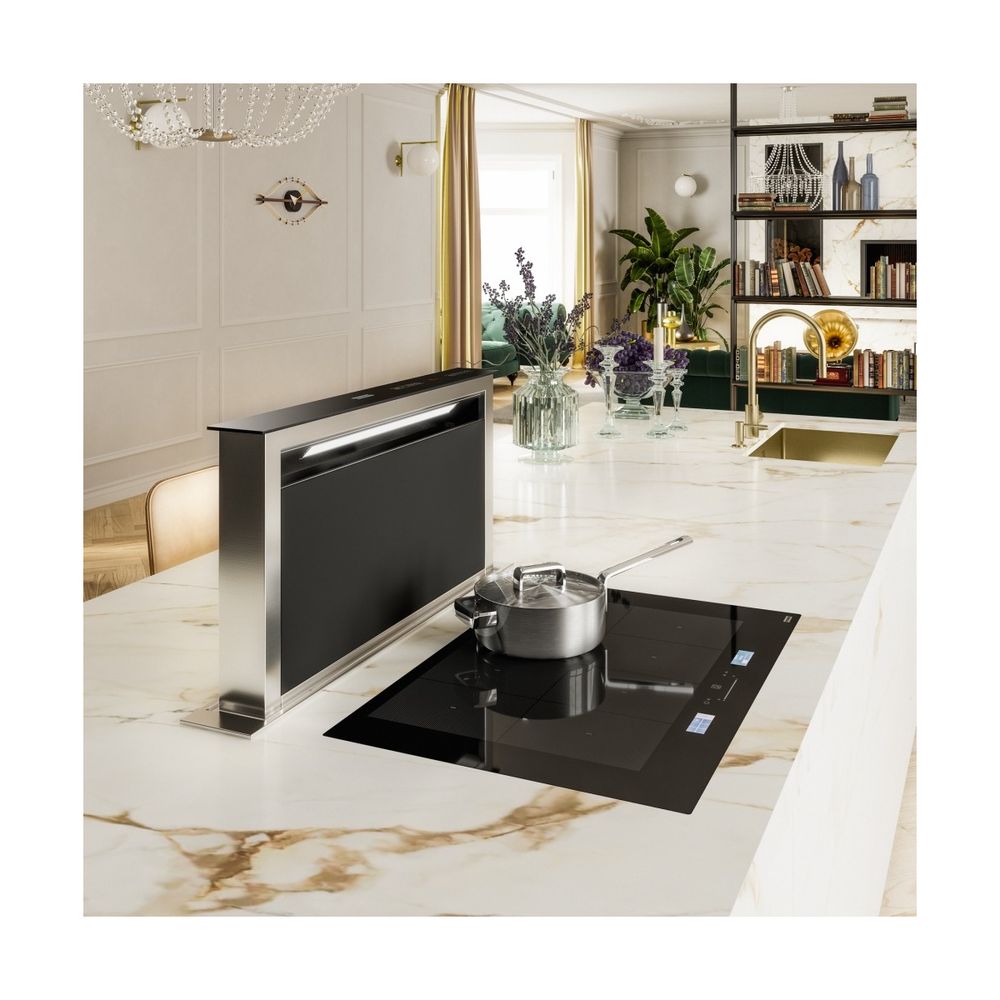 Με τον βυθιζόμενο απορροφητήρα Franke Downdraft 88, απολαμβάνεις ισχυρή απορρόφηση (1000m³/h) και κομψό σχεδιασμό με μαύρο κρύσταλλο και inox. Διαθέτει 4+1 ταχύτητες, ηλεκτρονικό χειρισμό touch, LED φωτισμό, μεταλλικά φίλτρα και ειδοποίηση αλλαγής φίλτρων. Ιδανικός για μοντέρνες κουζίνες, με χαμηλό θόρυβο και πρακτικό timer.