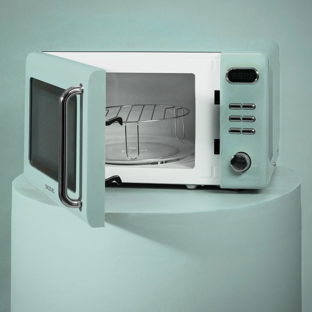 Φούρνος μικροκυμάτων 700W με γκριλ 800W και χωρητικότητα 20L, σε vintage/retro σχεδιασμό. Διαθέτει 5 επίπεδα έντασης και 8 αυτόματα προγράμματα μαγειρέματος για ευκολία. Η λειτουργία απόψυξης προσαρμόζεται σε κάθε τύπο τροφίμου, ενώ ο χρονοδιακόπτης έως 60 λεπτά εξασφαλίζει ακρίβεια στο μαγείρεμα. Ακόμη διαθέτει εσωτερικό φως, ηχητική ειδοποίηση τέλους και κλειδαριά ασφαλείας για την ασφάλεια των παιδιών σου