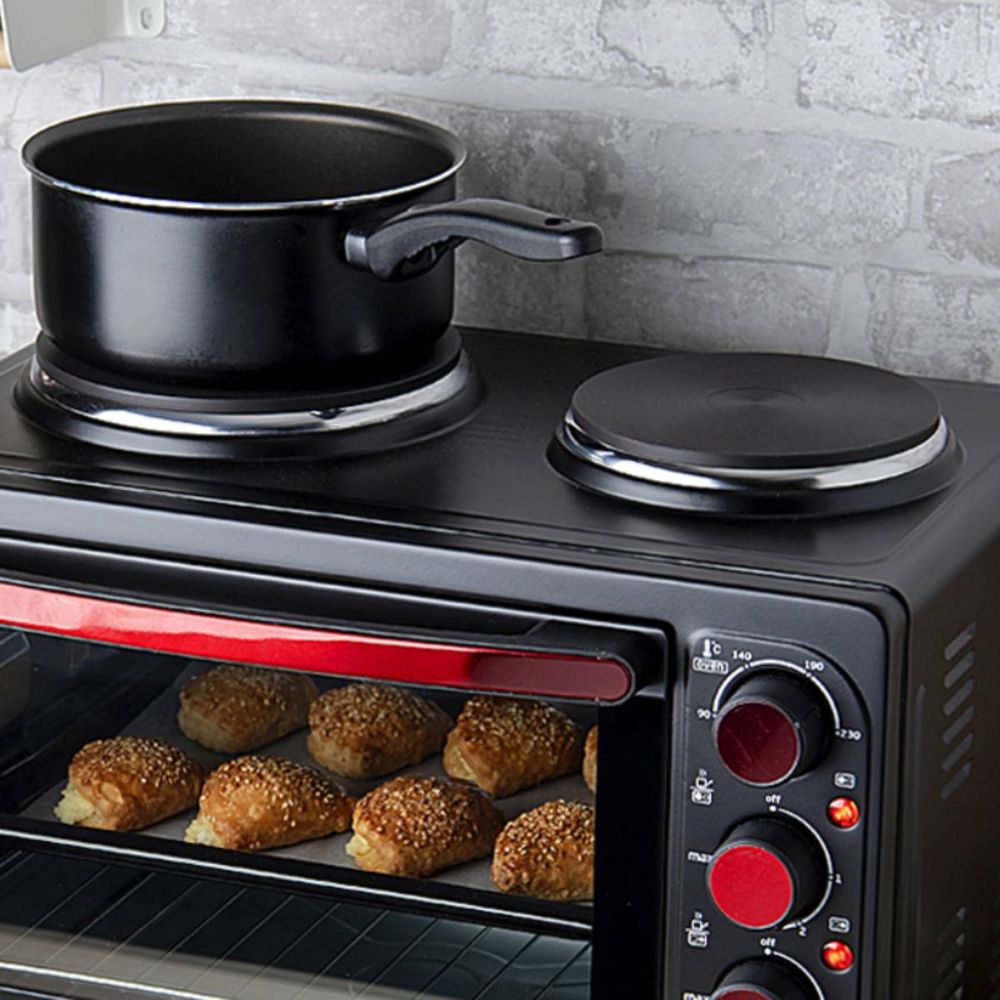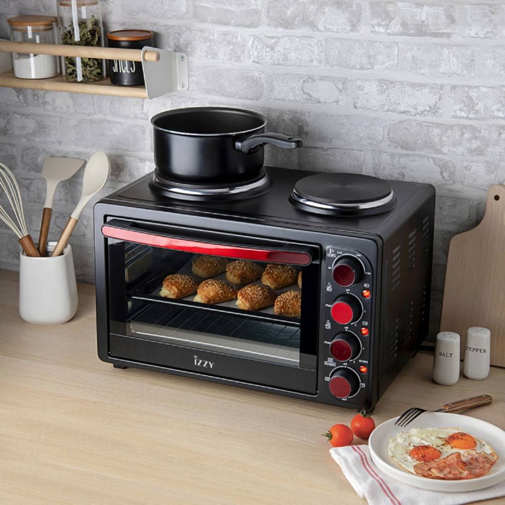 Ο IZZY Mini Oven 28 L με 2 εστίες σου προσφέρει ευελιξία και πρακτικότητα σε compact μέγεθος. Με φούρνο 28 λίτρων και δύο επάνω εστίες, μπορείς να ψήνεις, να μαγειρεύεις και να ζεσταίνεις εύκολα ταυτόχρονα. Ιδανικός για μικρές κουζίνες, φοιτητικά σπίτια ή εξοχικά, συνδυάζει λειτουργικότητα και εξοικονόμηση χώρου για καθημερινή μαγειρική άνεση.
