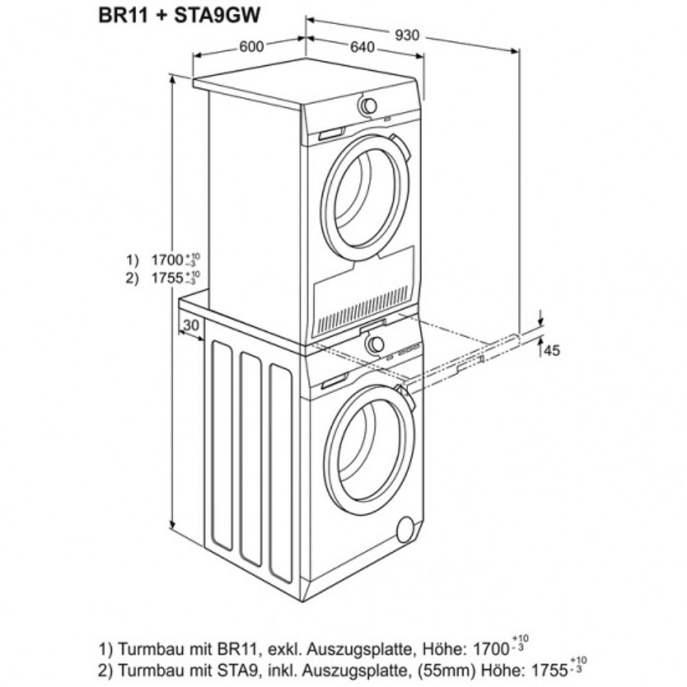 Συνδετικό πλυντηρίου & στεγνωτηρίου Electrolux STA9GW ιδανικό για πλυντήρια ρούχων βάθους 54 & 60 εκατοστών και στεγνωτήρια με βάθος από 54 εκατοστά και άνω.