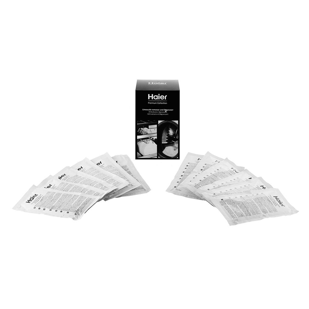 Αναζωογόνησε το πλυντήριό σου με τα ειδικά σακουλάκια καθαρισμού αλάτων Haier. Απομάκρυνε αποτελεσματικά τα άλατα και τις επικαθίσεις από τη συσκευή σου με μια απλή διαδικασία. Η συσκευασία περιλαμβάνει 12 σακουλάκια για πολλαπλές χρήσεις, διασφαλίζοντας τη μέγιστη απόδοση και καθαριότητα του πλυντηρίου σου.