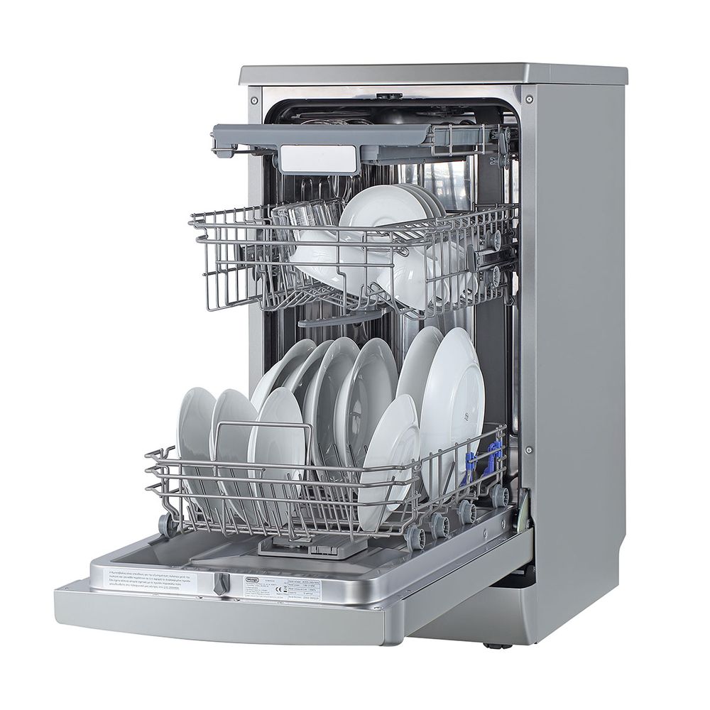 Πλυντήριο πιάτων Delonghi DDW45S20 Silver χωρητικότητας 10 σερβίτσιων, με 8 προγράμματα, με led οθόνη για εύκολη διαχείριση, αυτόματο άνοιγμα της πόρτας πλυντηρίου για καλύτερο στέγνωμα και τρίτο κάνιστρο για μαχαιροπίρουνα για μεγαλύτερη ευελιξία.