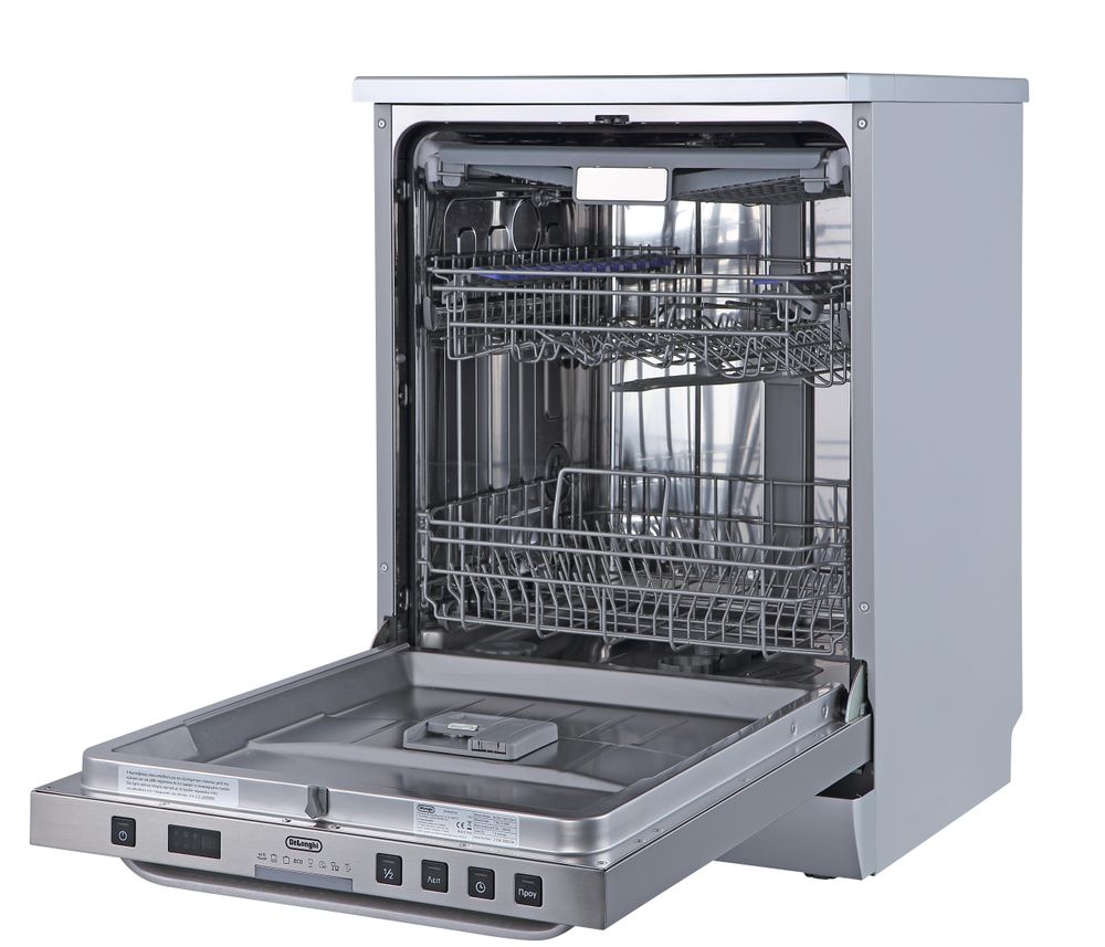 Πλυντήριο πιάτων Delonghi DDW60X20 Inox χωρητικότητας 14 σερβίτσιων, με τεχνολογία Vortex για εξαιρετικό καθαρισμό από τα λίπη για αστραφτερά σερβίτσια και τρίτο κάνιστρο για μαχαιροπίρουνα.