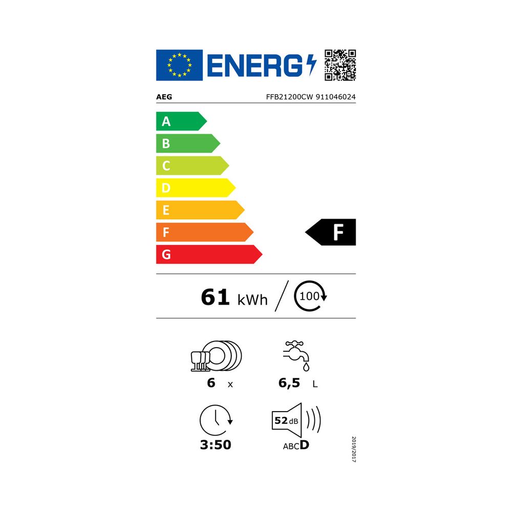 Μίνι πλυντήριο πιάτων AEG FFB21200CW με χωρητικότητα έως και 6 σερβίτσια, 4 θερμοκρασίες, πλάτος 55cm, ένδειξη υπολοιπόμενου χρόνου πλύσης, Eco λειτουργία και προγραμματισμό χρόνου έναρξης