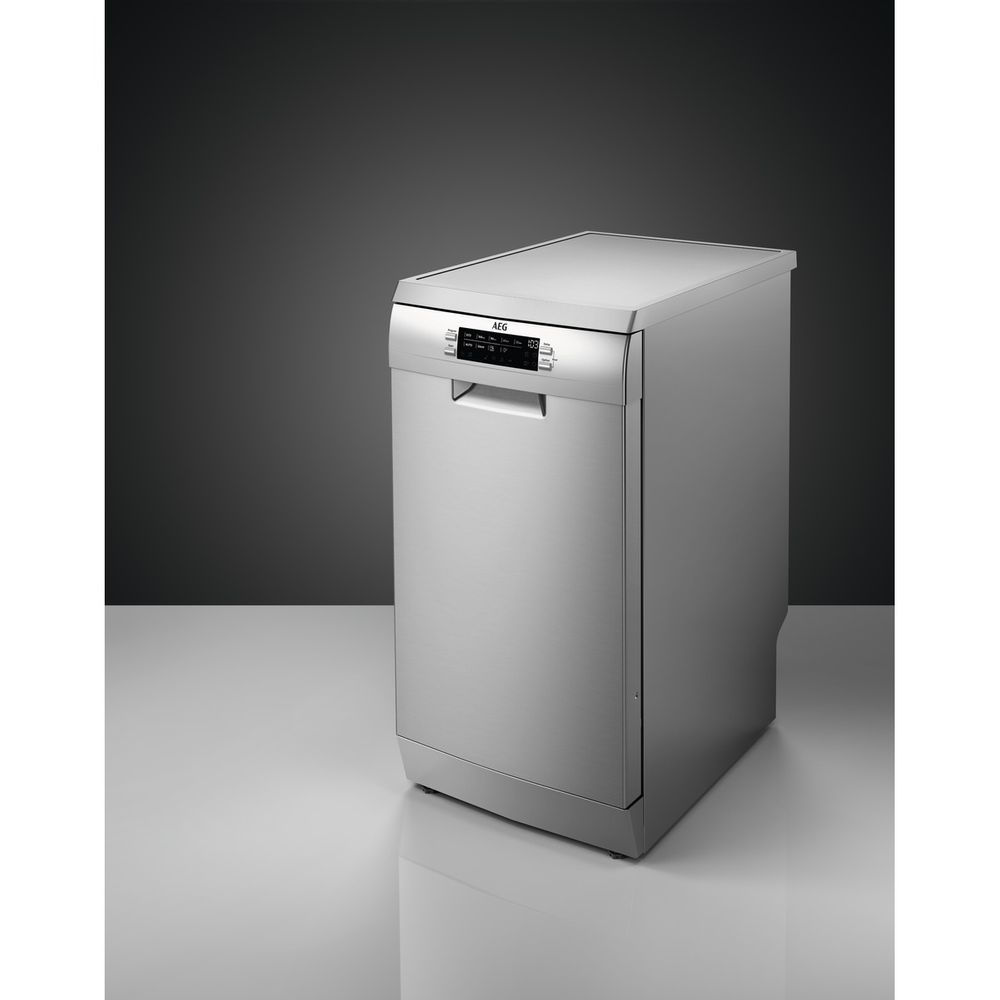Πλυντήριο πιάτων AEG FFB73527ZM, χωρητικότητας 10 σερβίτσιων με SatelliteClean δορυφορικό βραχίονα ψεκασμού για εξαιρετικά ισχυρό καθαρισμό και συρτάρι MaxiFlex για να χωράει μαγειρικά σκεύη διαφορετικών μεγεθών.