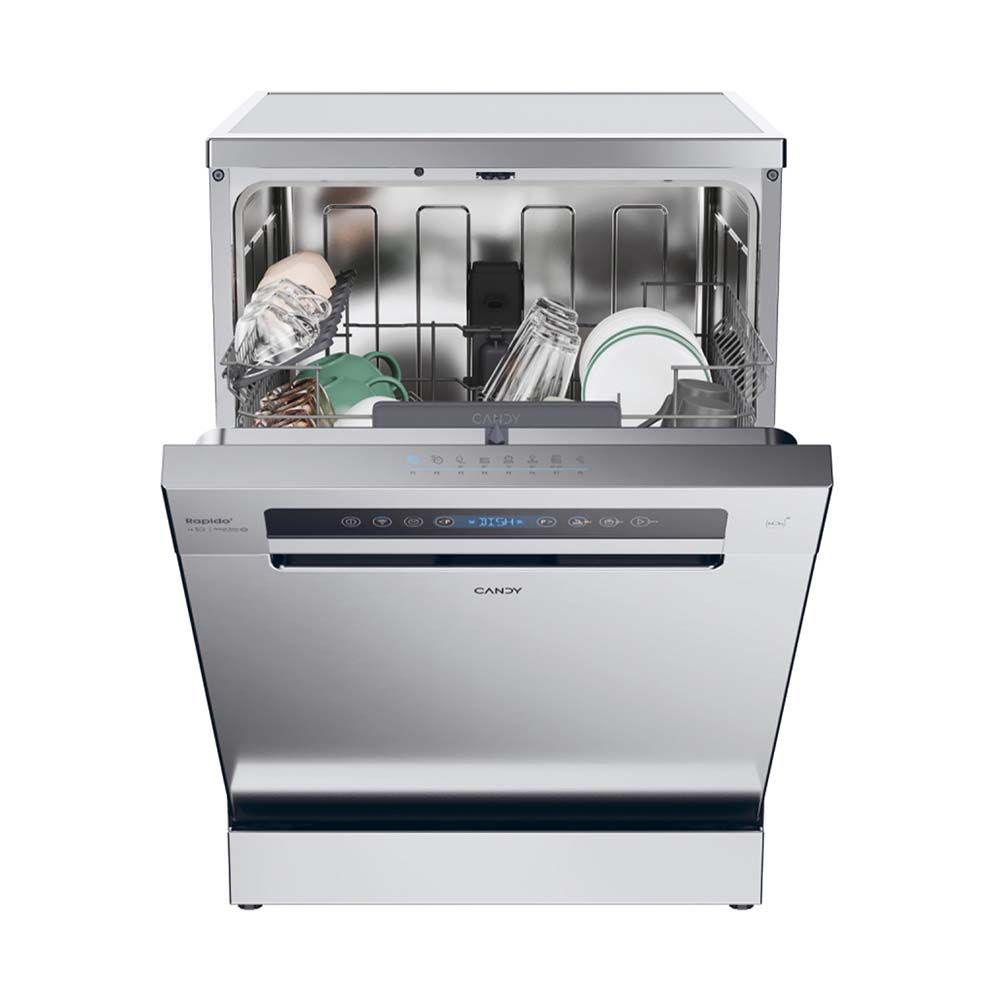 Πλυντήριο Πιάτων CF 4C6F0X της Candy χωρητικότητας 14 σερβίτσιων με τηλεχειρισμό, επιπλέον προγράμματα, φωνητικό βοηθό μέσω Wi-Fi, πρόγραμμα Wash&Dry για πλύσιμο και στέγνωμα σε 35΄ και μετάθεση έναρξης λειτουργίας 1-23 ώρες.