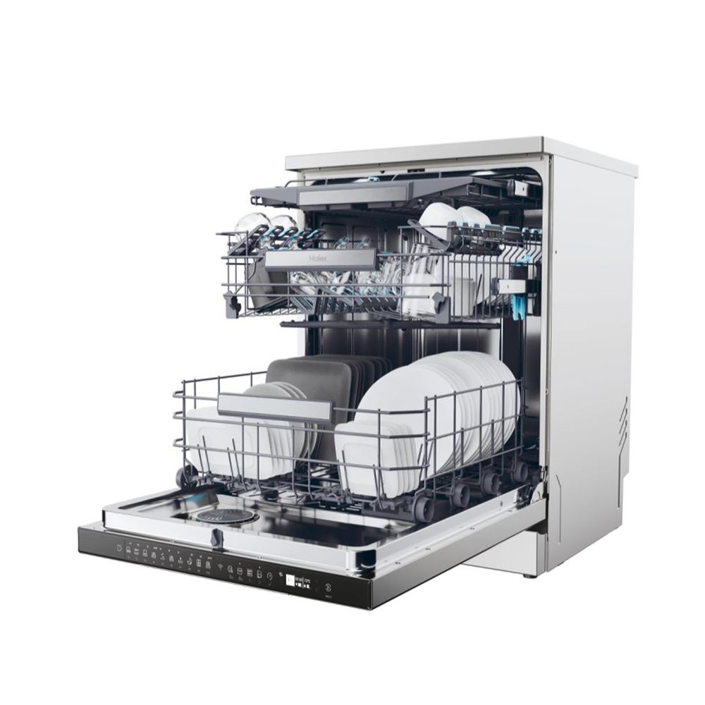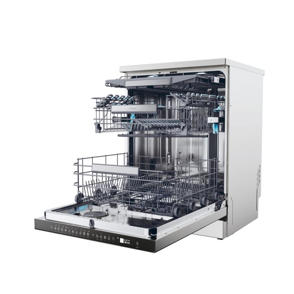 Πλυντήριο πιάτων Haier χωρητικότητας 14άρων σερβίτσιων με 10 προγράμματα και ρυθμιζόμενο χρόνο έναρξης. Έλεγξε τον απομακρυσμένα με ευκολία, χάρη στην συνδεσιμότητα Wi-Fi.