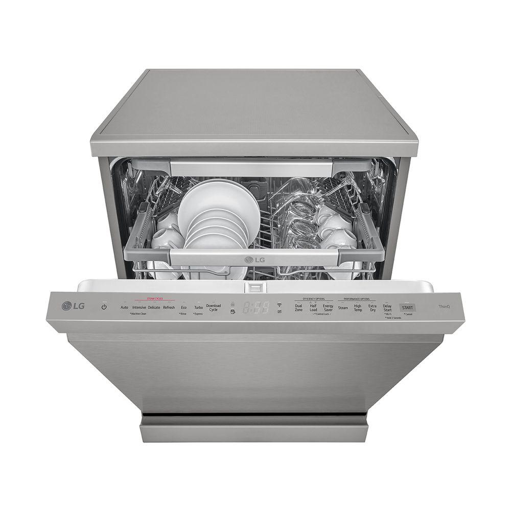 Πλυντήριο πιάτων LG με ατμό και QuadWash για αποτελεσματική πλύση και λιγότερες κηλίδες νερού. Διαθέτει τεχνολογία EasyRack Plus που φροντίζει την ιδανική τοποθέτηση των σερβίτσιων και ο κινητήρας Inverter Direct Drive προσφέρει μεγάλη αποδοτικότητα. Έλεγξε το απομακρυσμένα, μέσω της εφαρμογής SmartThinQ.