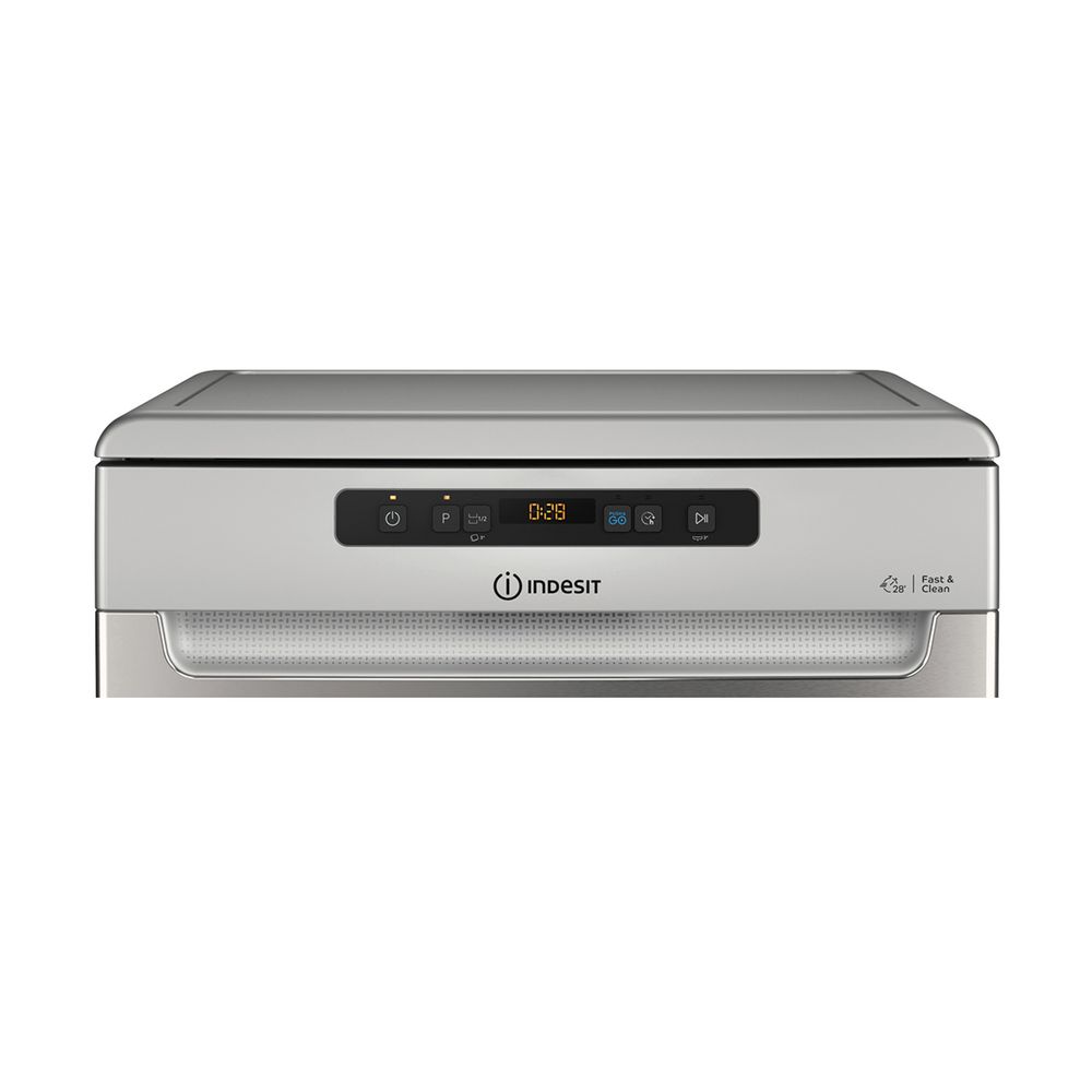 Πλυντήριο πιάτων Indesit D2F HD624 AS με χωρητικότητα 14 σερβίτσια, αυτόματο κύκλο πλύσης και στεγνώματος Push&GO, πρόγραμμα Hygiene 65° και Extra Hygiene, οπτικό σήμα λήξης και ψηφιακή οθόνη ενδείξεων.