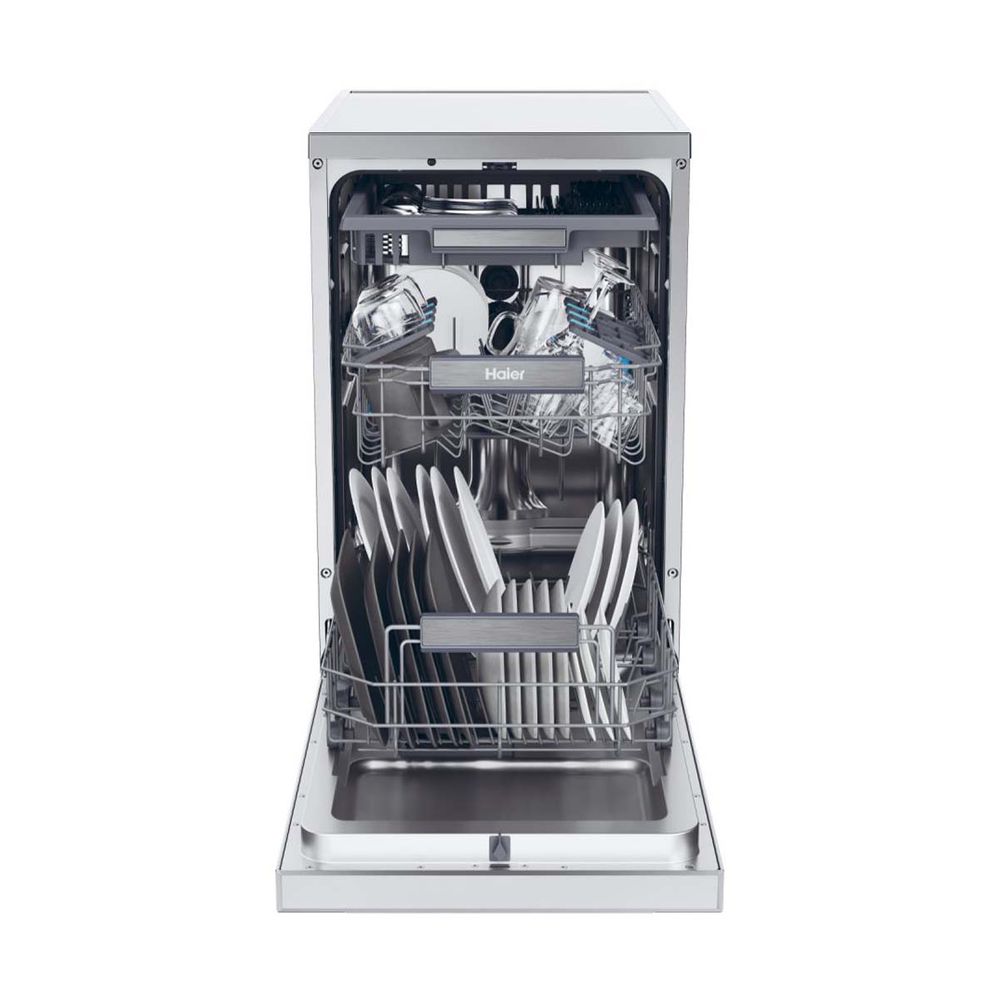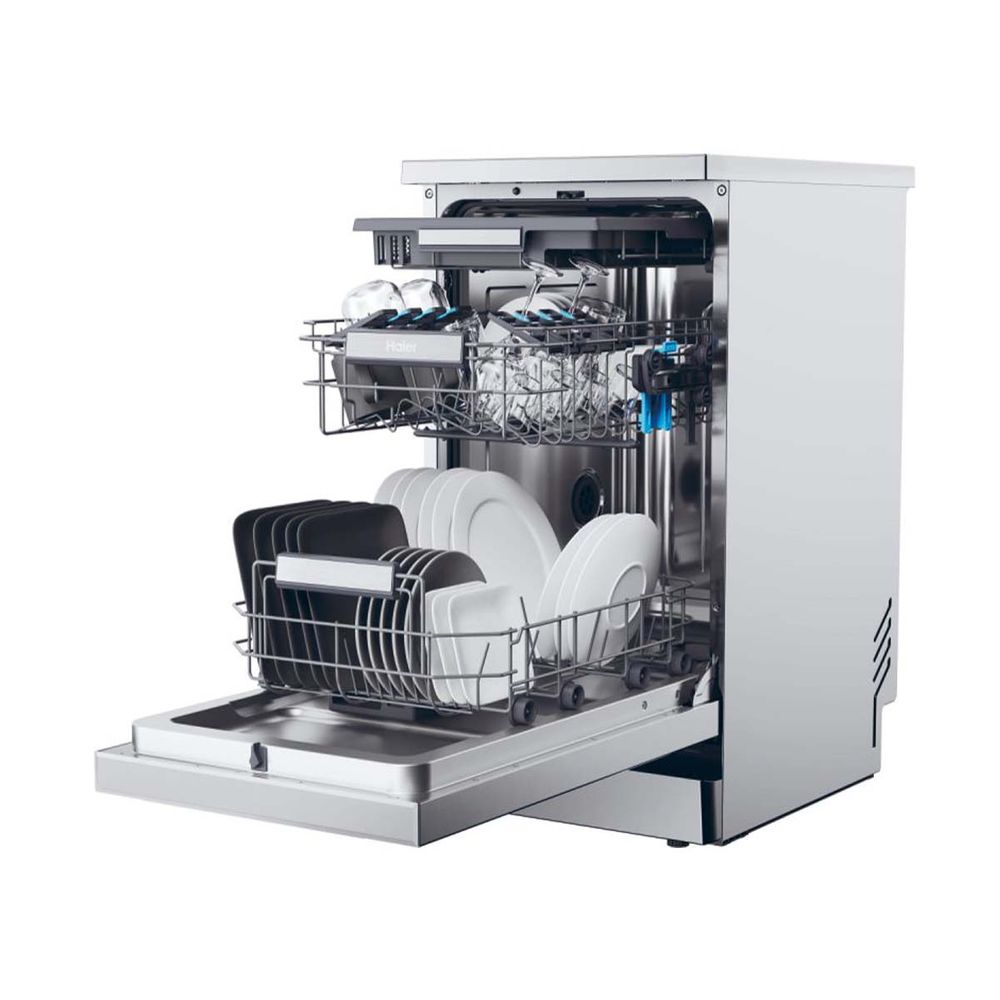 Πλυντήριο πιάτων Haier, χωρητικότητας 11 σερβίτσιων, με 3o Καλάθι για μαχαιροπίρουνα, και πανίσχυρους βραχίονες ψεκασμού. Προσφέρει αυτόματο άνοιγμα πόρτας, 8 Προγράμματα και 2 αυτόματα που ενσωματώνουν τεχνητή νοημοσύνη με έξυπνους αισθητήρες, επιπλέον 40+ ειδικά προγράμματα μέσω εφαρμογής (WiFi).