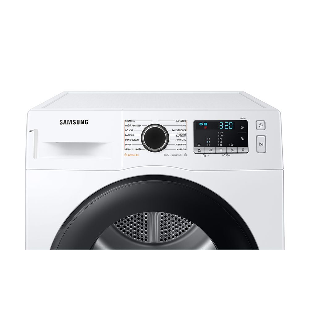 Στεγνωτήριο Samsung DV80TA220AE χωρητικότητας 8 κιλών, ενεργειακής κλάσης Α+++, λευκού χρώματος, 60 εκατοστών. Έχει παροχή αντλίας θερμότητας για μεγαλύτερη εξοικονόμηση ρεύματος και πρόγραμμα Easy Iron. Συν τοις άλλοις, το σύστημα Optimal Dry προσαρμόζει τον χρόνο που απαιτείται για το ιδανικό στέγνωμα, αναγνωρίζοντας έτσι το επίπεδο υγρασίας των ρούχων, ενώ το Digital Inverter μοτέρ του προσφέρει χαμηλό θόρυβο και εξαιρετική απόδοση για μεγάλο χρονικό διάστημα.