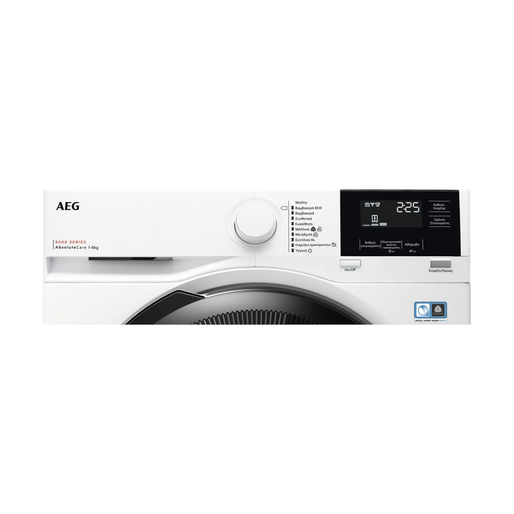 Στεγνωτήριο AEG TR818A4G χωρητικότητας 8 κιλών, με τεχνολογία AbsoluteCare System η οποία ελέγχει με μεγάλη ακρίβεια τις κινήσεις και τη θερμοκρασία όλων των τύπων των υφασμάτων μέσα στον κάδο.