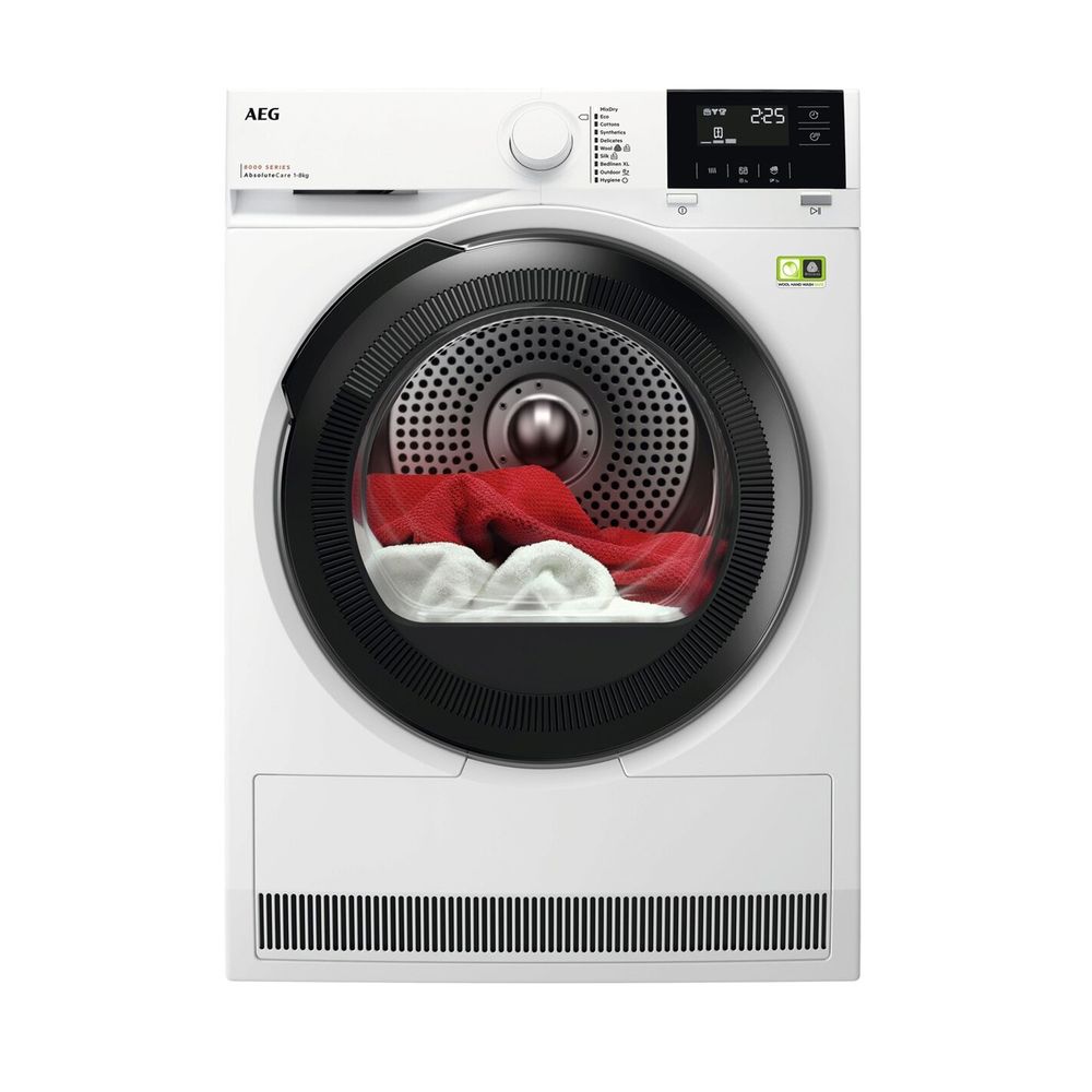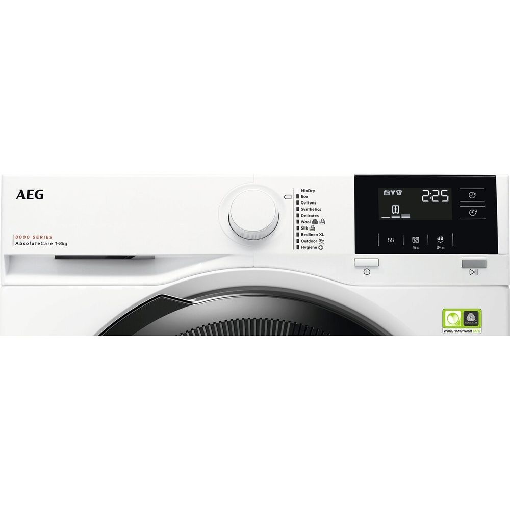 Στεγνωτήριο AEG TR8184E με χωρητικότητα 8kg, AbsoluteCare που χρησιμοποιεί τεχνολογία αντλίας θερμότητας, λειτουργία MixDry για να μην χρειάζεται να διαχωρίζεις τα ρούχα, κύκλος υγιεινής που στεγνώνει και απολυμαίνει και αισθητήρες υγρασίας PreciseDry.