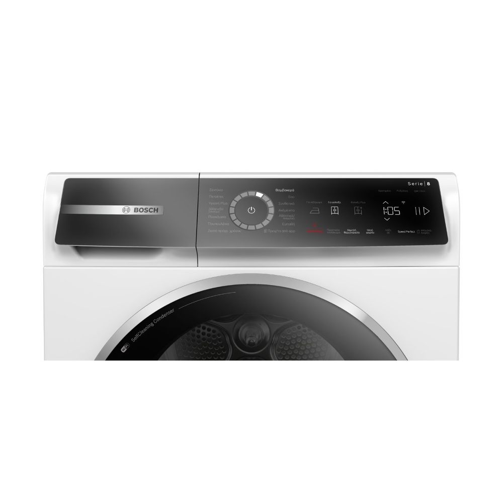 AutoDry για αυτόματο στέγνωμα, SelfCleaning συμπυκνωτή, Home Connect, Πρόγραμμα σεντονιών με αμφίδρομη περιστροφή κάδου, και ιδιαίτερα χαμηλά επίπεδα θορύβου, μόνο στα 61dB.