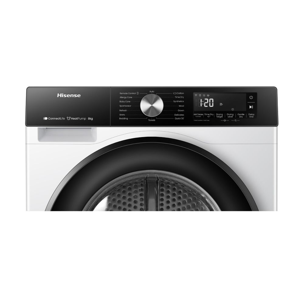 Το Hisense DH3S802BW2 με χωρητικότητα 8kg κάνει το στέγνωμα των ρούχων πιο εύκολο και αποδοτικό. Με τεχνολογία TwinAir για ομοιόμορφο στέγνωμα, αισθητήρα υγρασίας και προγράμματα όπως Auto Dry, Quick Dry και Allergy Care, φροντίζει κάθε ύφασμα με ακρίβεια. Διαθέτει Wi-Fi για απομακρυσμένο έλεγχο, φωτιζόμενο κάδο, μεγάλη πόρτα και δυνατότητα χρονοπρογραμματισμού για ακόμα μεγαλύτερη άνεση στην καθημερινότητά σου.