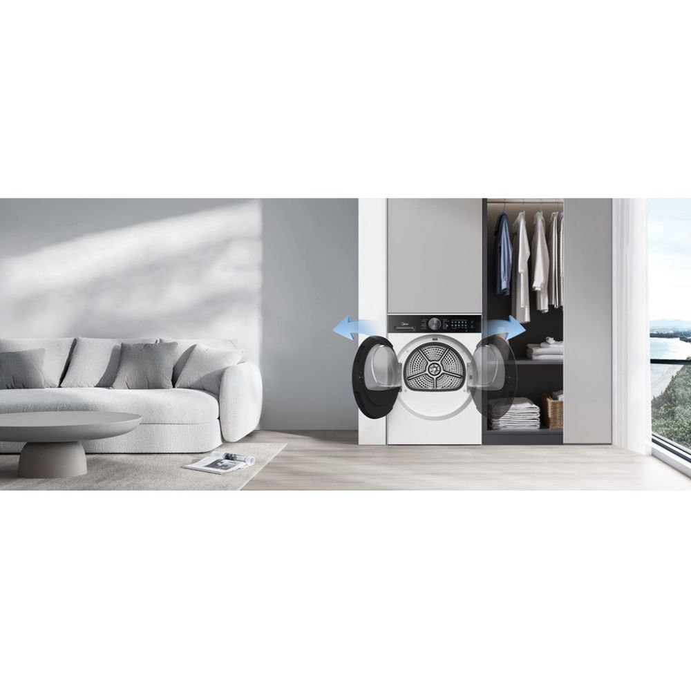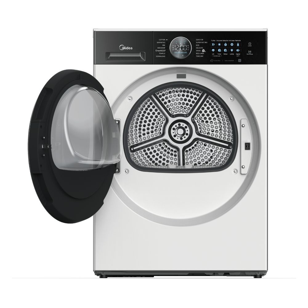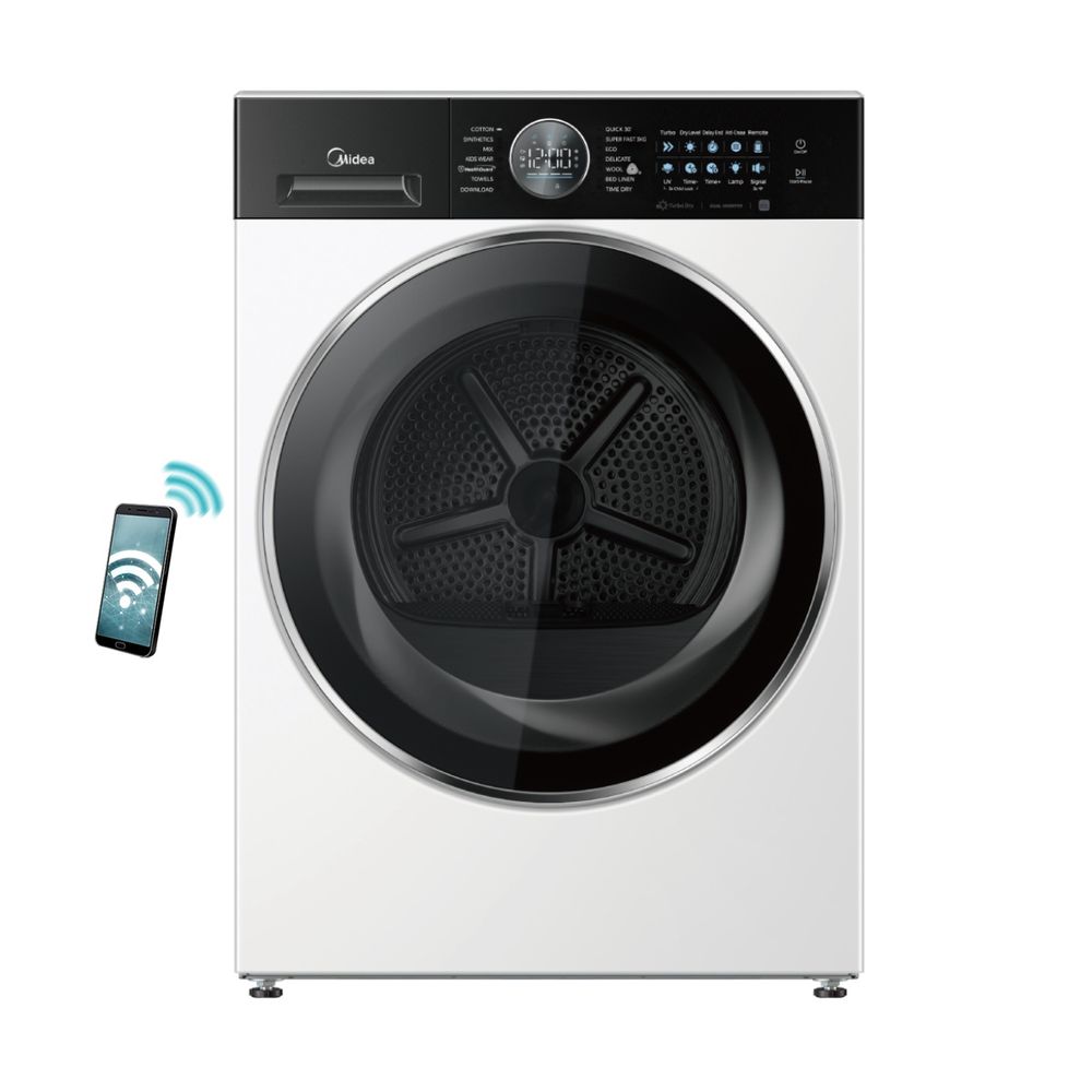 Στέγνωσε έως 10kg ρούχων με το MIDEA MD210H100BW/W-GR! Απόλαυσε ατμό, UV απολύμανση, αντιβακτηριακή προστασία και λειτουργία Turbo. Με αισθητήρα στεγνώματος, αυτοκαθαριζόμενο συμπυκνωτή και Smart Home σύνδεση, έχεις άνεση, υγιεινή και τεχνολογία σε κάθε κύκλο.