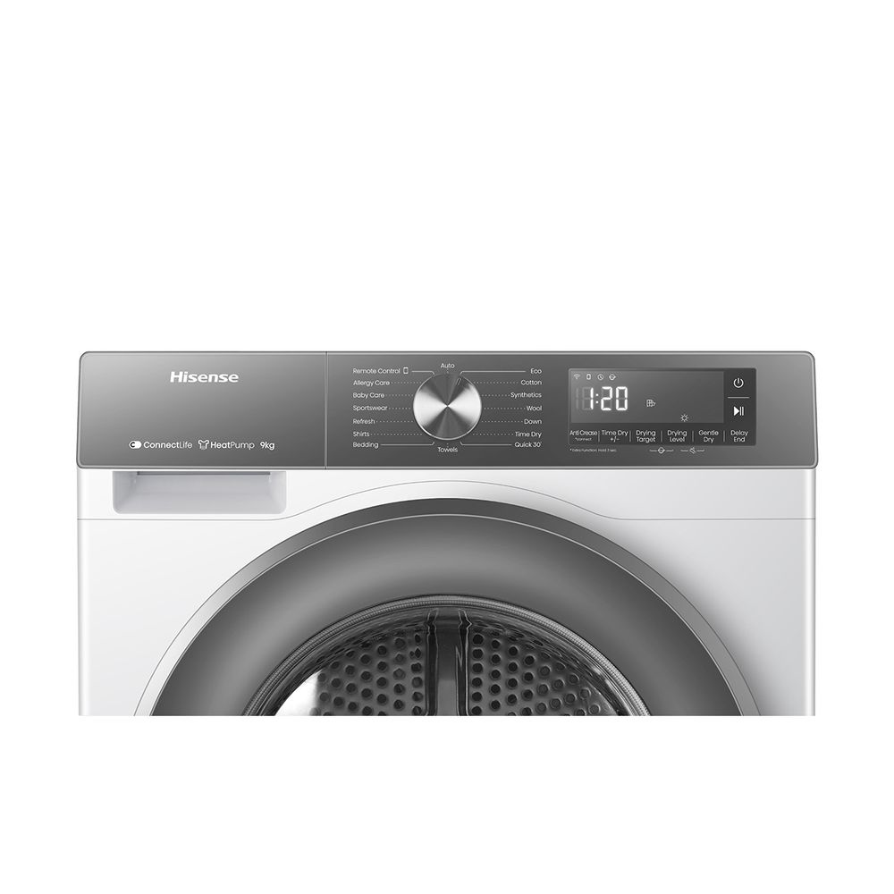 Κάνε το στέγνωμα πιο έξυπνο και άνετο με το στεγνωτήριο Hisense DH3S902BWCC 9kg. Στεγνώνεις άνετα μεγάλους όγκους ρούχων, το ελέγχεις εύκολα μέσω WiFi και τοποθετείς τη συσκευή όπως σε βολεύει χάρη στην αναστρέψιμη πόρτα. Φρεσκάρεις ρούχα σε μόλις 10 λεπτά, φροντίζεις την υγεία σου με το πρόγραμμα Allergy Care και αφήνεις το Auto Dry να προσαρμόσει αυτόματα τον χρόνο στεγνώματος, εξοικονομώντας ενέργεια και προστατεύοντας τα υφάσματα.