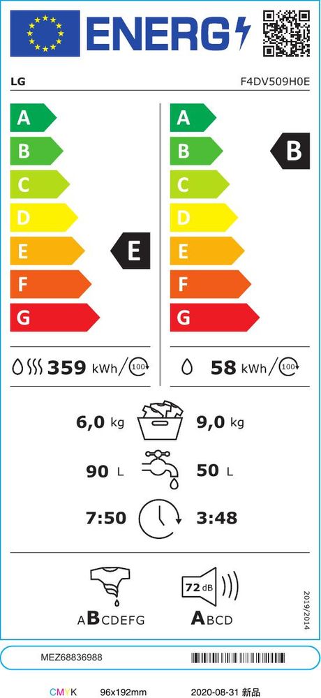 Το πλυντήριο-στεγνωτήριο LG F4DV509H0E 9kg, 1.400 στροφών είναι η έξυπνη οικιακή συσκευή που προσαρμόζεται στις ανάγκες σου και σε βοηθά να εξοικονομείς χρόνο και ενέργεια. Χάρη στην επαναστατική τεχνολογία AI DD, εξασφαλίζεις τη μέγιστη προστασία για τα ρούχα σου, ενώ το σύστημα TurboWash σου επιτρέπει να κάνεις ολοκληρωμένη πλύση σε 59 λεπτά! Διαθέτει, επίσης, τεχνολογία LG Steam, με την οποία εξαλείφεται το 99,9% των αλλεργιογόνων, ενώ μειώνονται οι ζάρες κατά 30%.